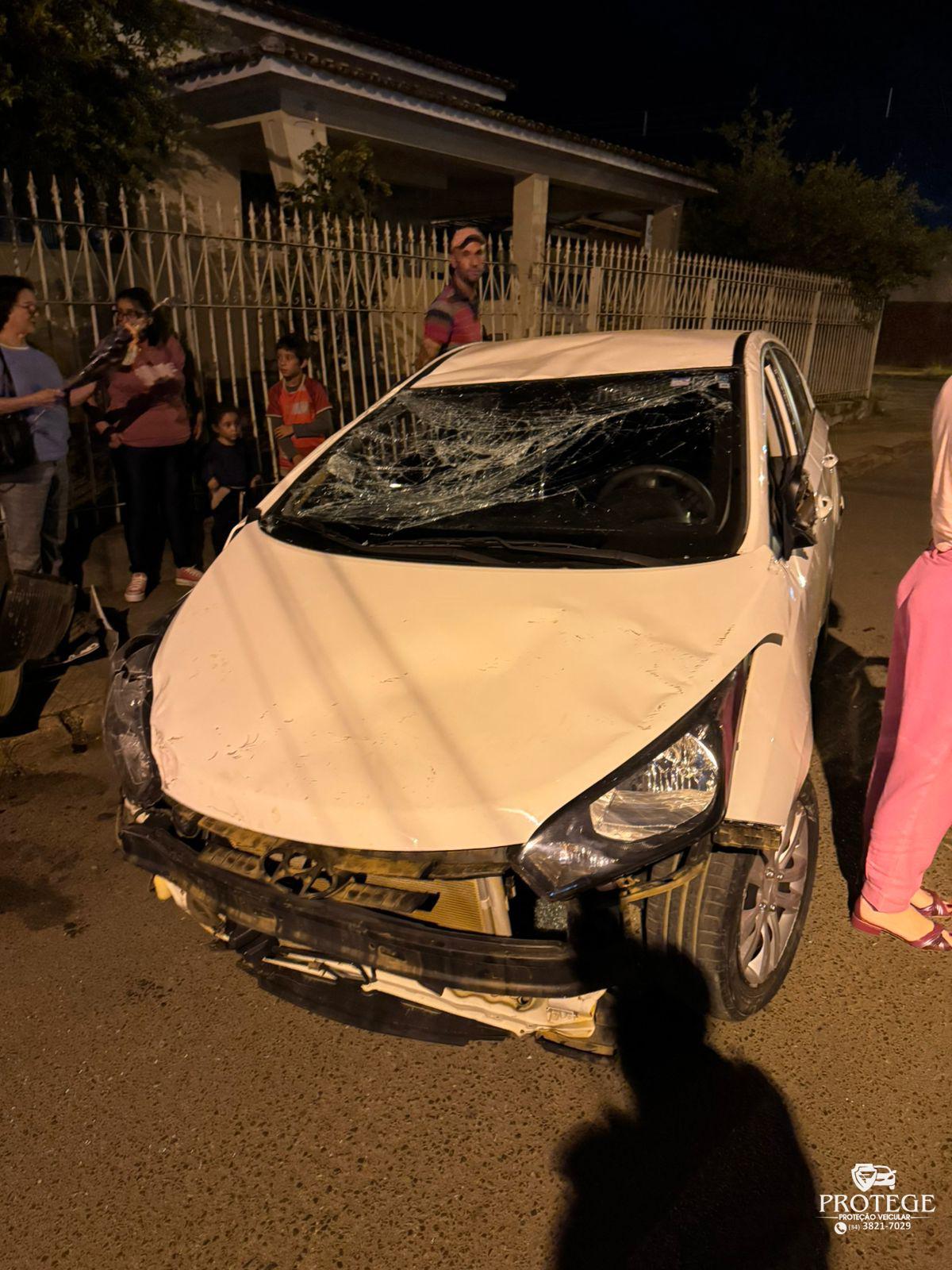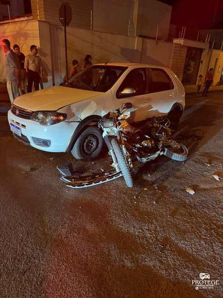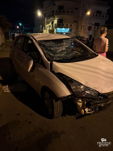 A condutora do Hyundai/HB20, de 71 anos, sofreu um pequeno corte próximo ao cotovelo esquerdo. Ela relatou que também parou na parada obrigatória na Rua Doutor Barcelos. No entanto, havia um veículo à sua frente que atrapalhava sua visão. Ao arrancar em baixa velocidade, acabou colidindo com a motocicleta na Avenida Frei Gabriel. Em seguida, perdeu o controle do HB20, atingiu o portão da residência e capotou.
