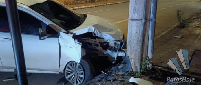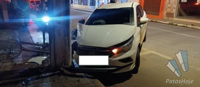 De acordo com o relato policial, por volta das 23h09, a condutora de 30 anos perdeu o controle do Fiat Cronos enquanto mexia no celular, colidindo contra um poste de iluminação pública na Rua General Osório, no Centro da cidade e ainda em uma lixeira na calçada da Escola Normal. O carro ficou atravessado na via.