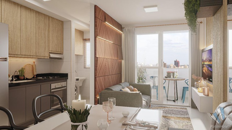 O condomínio fechado possui guarita com controle de acesso, elevador e o mais completo lazer de Patos de Minas, com piscina, quiosques com churrasqueira, quadra poliesportiva, quadra de beach tennis, espaço para academia, salão com área gourmet, playground, mine mercado, bicicletário. Os apartamentos contarão com dois quartos, sala de jantar e sala de TV, cozinha, banheiro social, área de serviço separada e tem como principal diferencial ampla SACADA na sala, além de opções de térreo com área externa (quintal) exclusiva do apartamento.