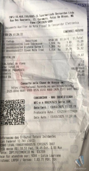 No momento, quando tentava sair pelo caixa, ele foi abordado pela equipe de segurança do supermercado, que constatou a fraude e acionou a Polícia Militar. Durante a abordagem, foi encontrado com ele a quantia de R$ 179,00 em dinheiro e um cupom fiscal no valor de R$ 78,07, evidenciando a diferença entre os valores das carnes adquiridas e os valores efetivamente pagos.