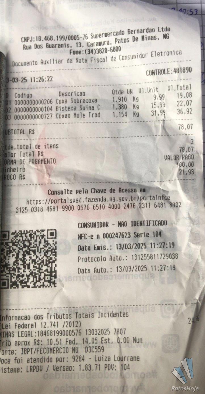 O suspeito solicitou no setor de açougue diversas peças de carne, totalizando o valor de R$ 131,71. No entanto, ao se dirigir para uma área com menor circulação de pessoas, ele substituiu as etiquetas originais das carnes por outras com valores inferiores, reduzindo significativamente o preço final da compra.
