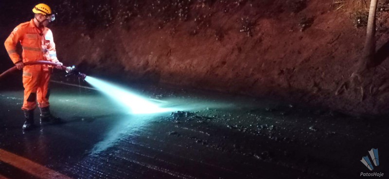 O grande derramamento de resíduo orgânico de granja suína se espalhou por uma extensão de aproximadamente 200 metros, transformando a pista em um perigoso escorregador. A Polícia Rodoviária Federal precisou acionar o 12º Batalhão de Bombeiros Militar para a limpeza e liberação da rodovia. O risco de derrapagem era iminente, colocando em risco a segurança dos motoristas que trafegavam pelo local.