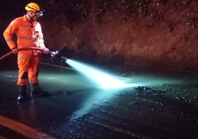 O caminhão Auto Bomba Tanque com capacidade de 5000 litros d'água do Corpo de Bombeiros não foi suficiente para fazer a limpeza. A quantidade de "lama" suína era tamanha que foi preciso usar um caminhão pipa, com capacidade de 8000 litros d'água para auxiliar na lavagem, sendo reabastecido uma vez durante a operação. Além disso, uma máquina com pá carregadeira também teve que ser usada para "rapar" a grossa camada de resíduo sobre o asfalto. A estimativa é que cerca de 18 mil litros d'água foram utilizados na força-tarefa.