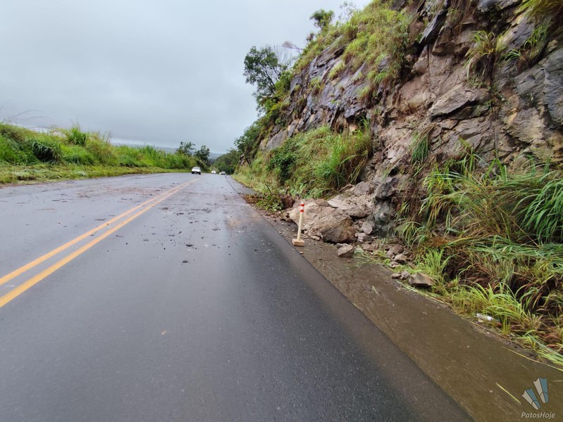 Motoristas que trafegam pela MGC-354, no trecho entre Patos de Minas e Presidente Olegário, devem redobrar a atenção. Um deslizamento de pedra calcária foi registrado no km 154 da rodovia, na manhã desta quarta-feira (21). Apesar do susto, não houve vítimas nem danos a veículos.