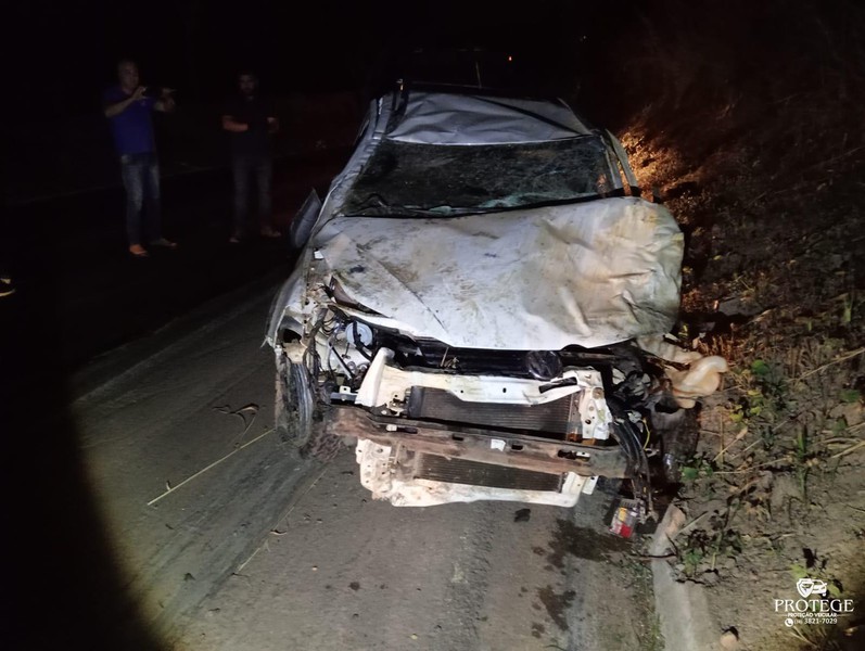 De acordo com informações da Polícia Militar Rodoviária, durante a madrugada, por volta das 4h15, um veículo Hyundai HB20 com placa de Patos de Minas tombou na rodovia BR-354. O automóvel era conduzido por um homem de 32 anos, que relatou ter perdido o controle direcional do carro quando trafegava no sentido Belo Horizonte–Patos de Minas. No veículo estavam ainda duas passageiras: de 79 anos e de 81 anos.