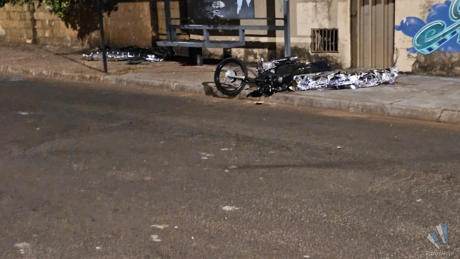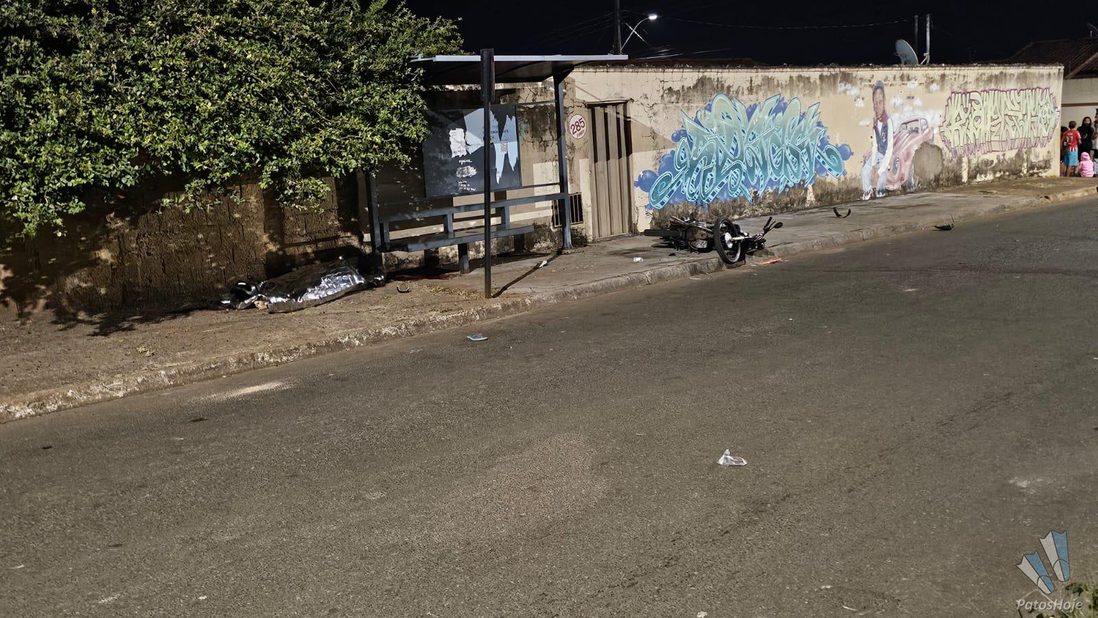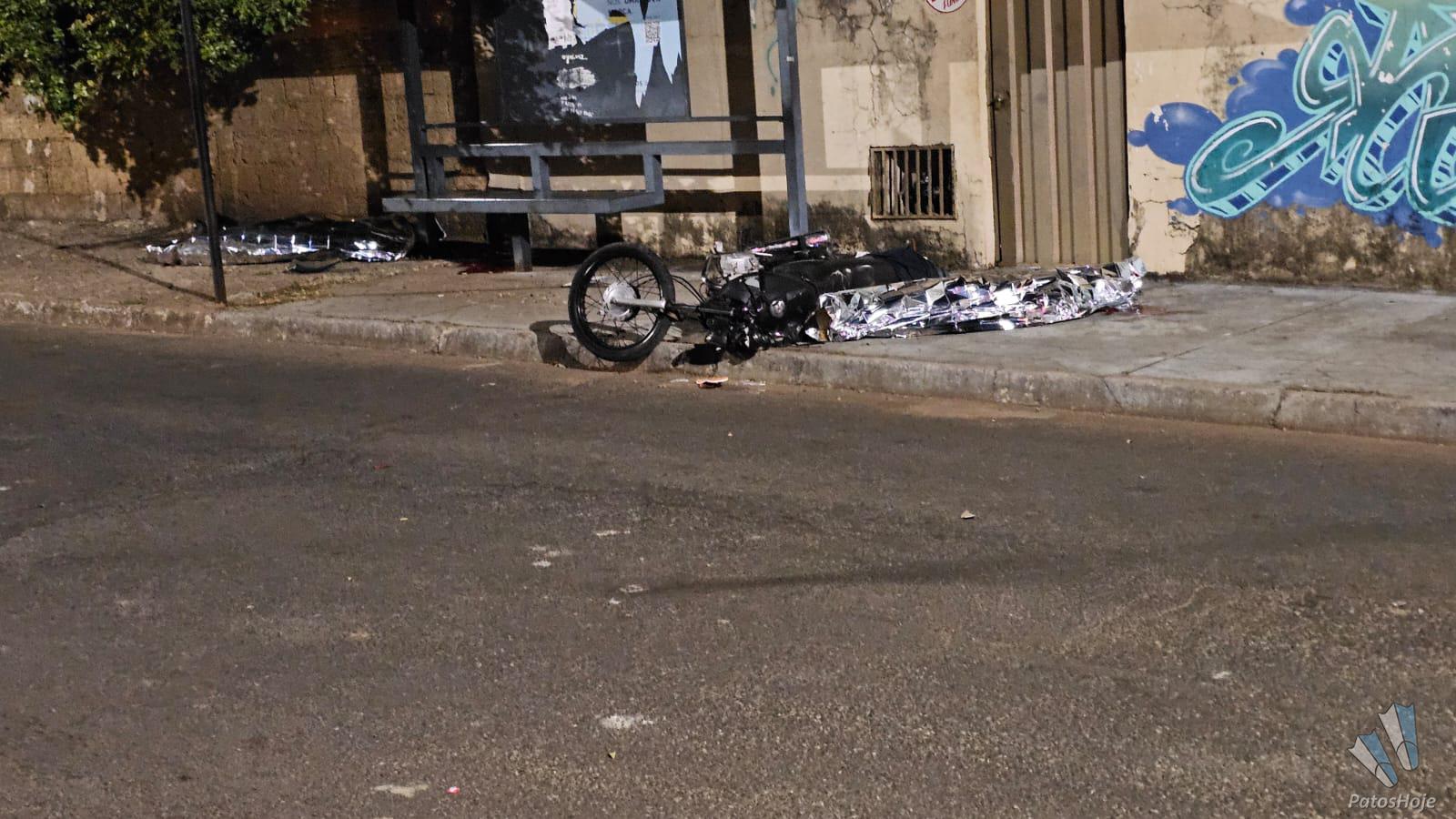 Dois homens foram assassinados a tiros na noite desta quinta-feira (24) no bairro Jardim Esperança. Eles estavam em uma motocicleta, quando o atirador se aproximou e abriu fogo. Uma mulher que estava saindo da igreja foi atingida por uma bala perdida.