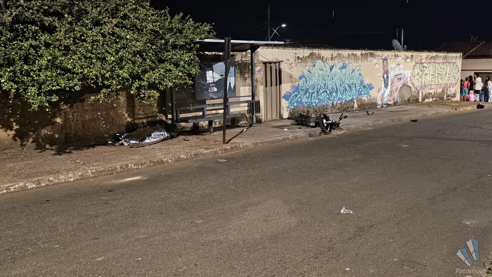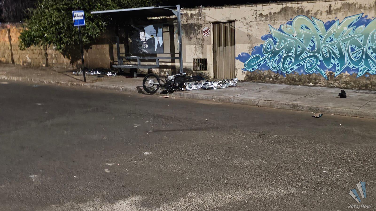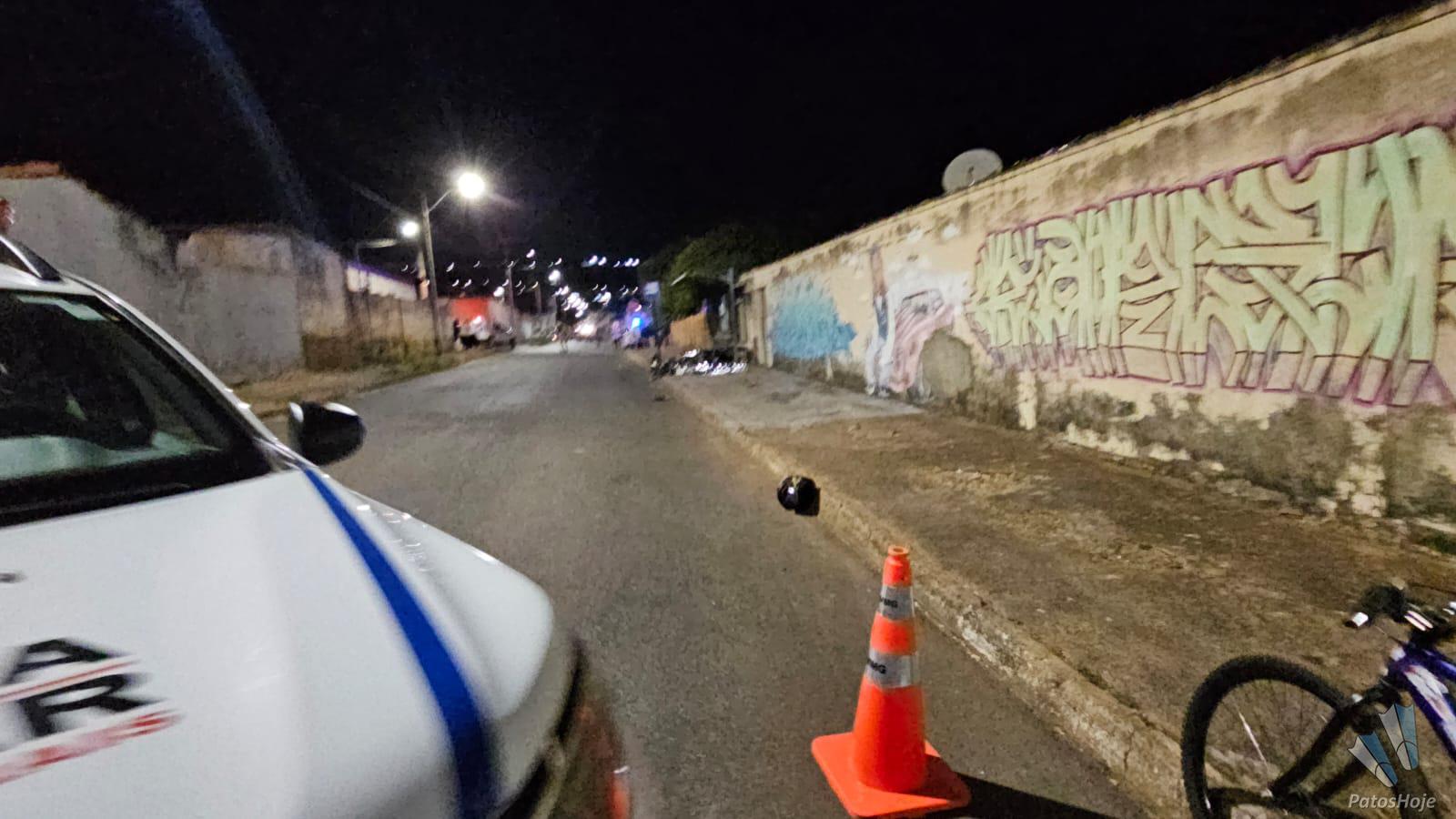 Dois homens foram assassinados a tiros na noite desta quinta-feira (24) no bairro Jardim Esperança. Eles estavam em uma motocicleta, quando o atirador se aproximou e abriu fogo. Uma mulher que estava saindo da igreja foi atingida por uma bala perdida.