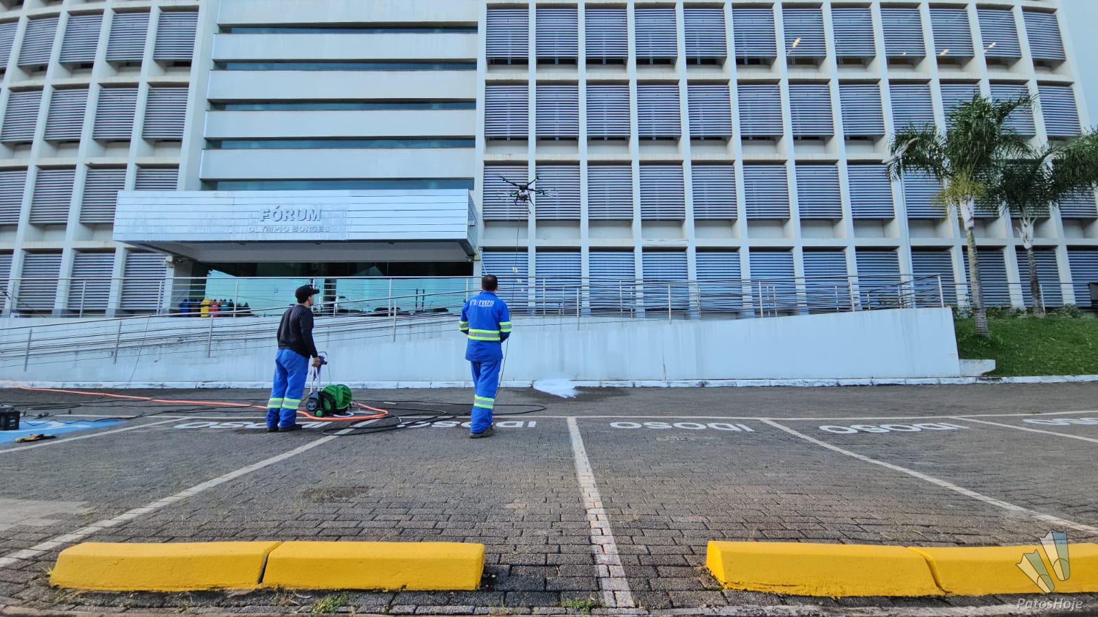 Agora, a aplicação na limpeza de grandes estruturas urbanas surge como mais uma alternativa eficiente, segura e econômica. A iniciativa no Fórum Olímpio Borges demonstra como a tecnologia pode substituir métodos tradicionais, reduzindo riscos e otimizando o tempo de execução.