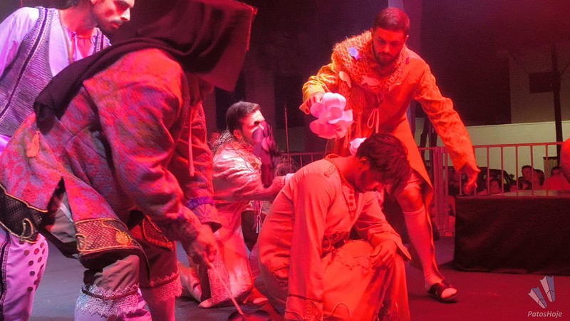 Em um palco montado na Praça Irmão Sol, a apresentação começou com a Santa Ceia. Jesus Cristo distribuiu pão e vinho para os 12 apóstolos e lembrou os fatos históricos da traição de Judas e a negação de Pedro. O julgamento de Cristo também foi um ponto alto da apresentação, condenado sem provas. Fiéis se aglomeraram em frente ao palco para não perder cada detalhe apresentado com um show de luzes e som.