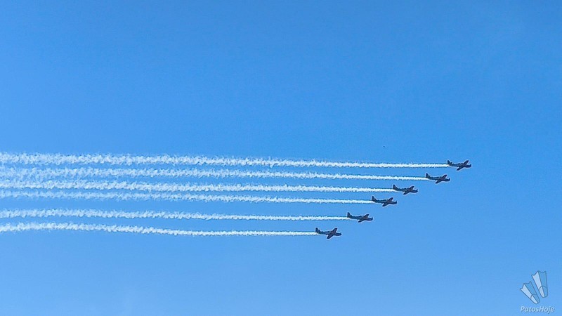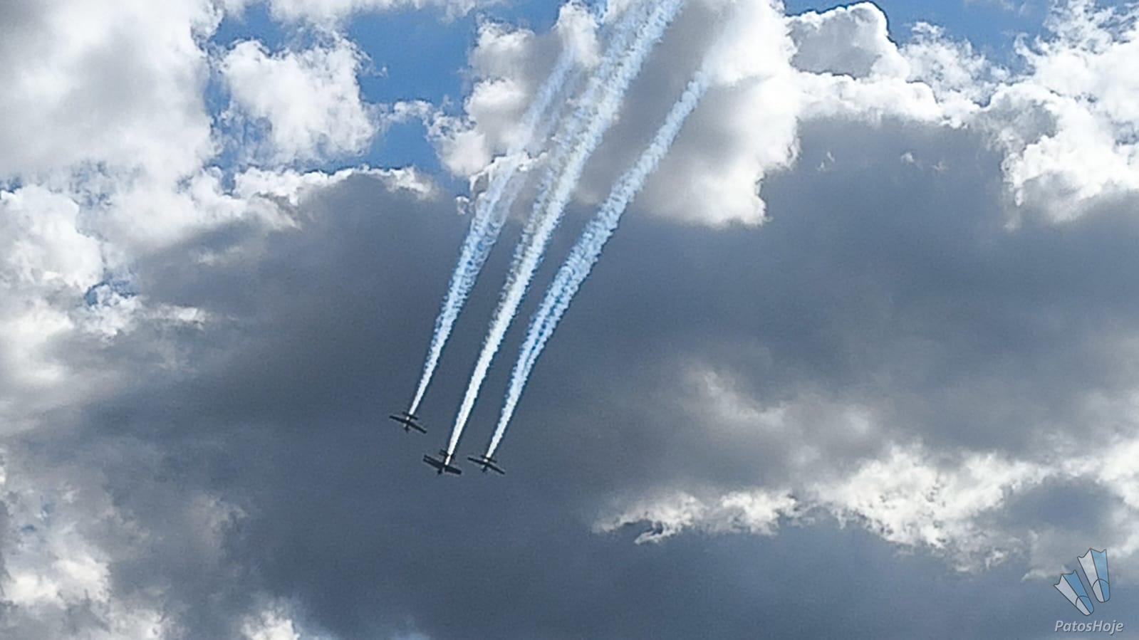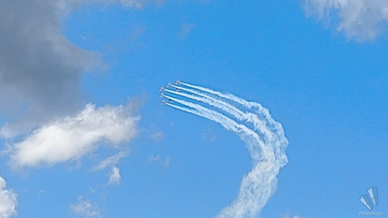 Patos de Minas recebeu, neste sábado (28), uma apresentação mais que especial. Em exibição histórica, a Esquadrilha da Fumaça desafiou a gravidade com manobras espetaculares nos céus da Capital do Milho. Uma multidão resistiu ao sol forte e acompanhou de perto cada manobra.