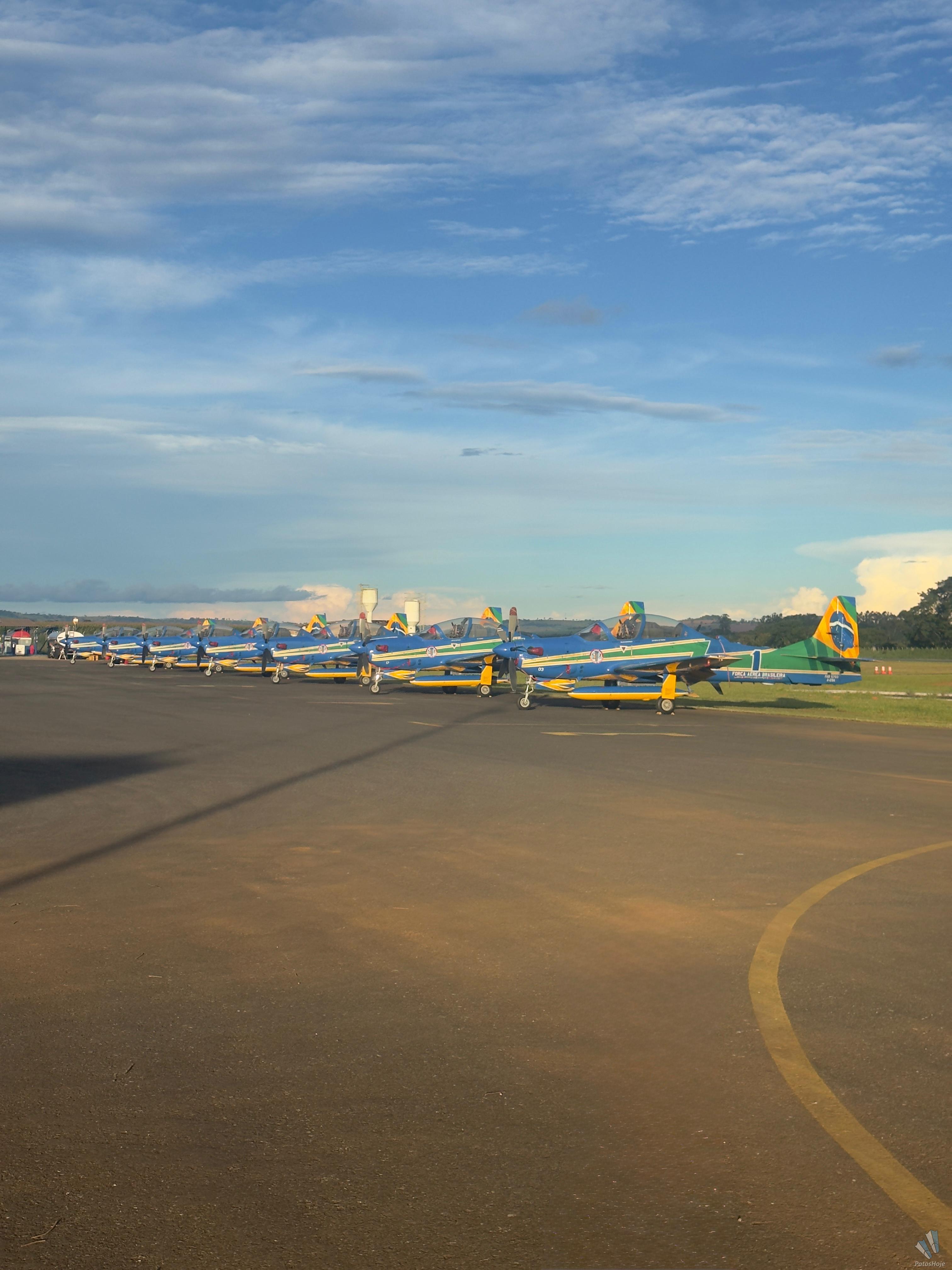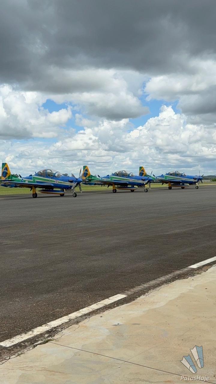 A apresentação da Esquadrilha da Fumaça acontece apenas no sábado (28), mas as aeronaves da Força Aérea Brasileira já começaram a chamar atenção em Patos de Minas. Os aviões chegaram na manhã desta quarta-feira (25) ao Aeroporto Municipal e já movimentam a cidade com manobras que deram uma prévia do espetáculo aéreo.