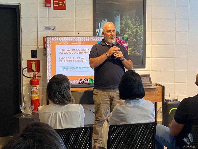 Foi lançado, nessa quinta-feira (15), o segundo Festival da Colheita do Café em Patos de Minas. O evento será realizado de 23 a 29 de junho e visitará 12 produtores rurais. Além disso, o festival também acontecerá na Praça do Coreto, nos dias 28 e 29 de junho. O evento é realizado pela “Rota do Café do Cerrado Mineiro”, o Sebrae e a Prefeitura de Patos de Minas.
