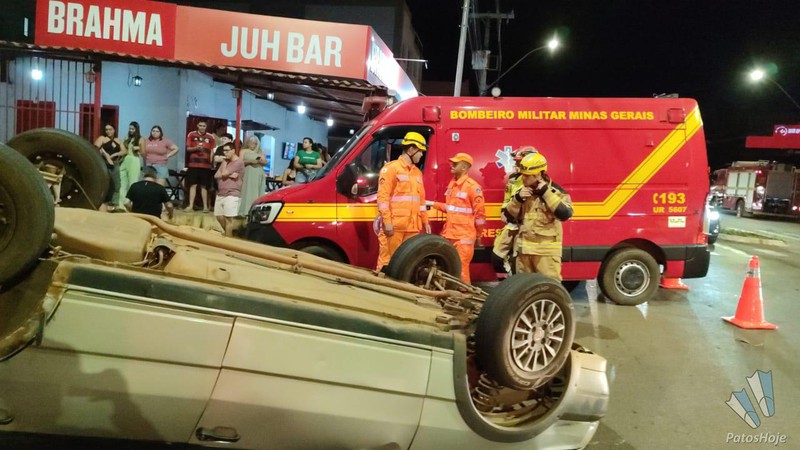 Um acidente envolvendo um Fiat/ Uno e uma motocicleta terminou com o carro capotado, na noite desta sexta-feira (27), em Patos de Minas. A batida foi registrada por volta das 22h30 no cruzamento da rua Major Gote com a rua Jaime Ramos.
