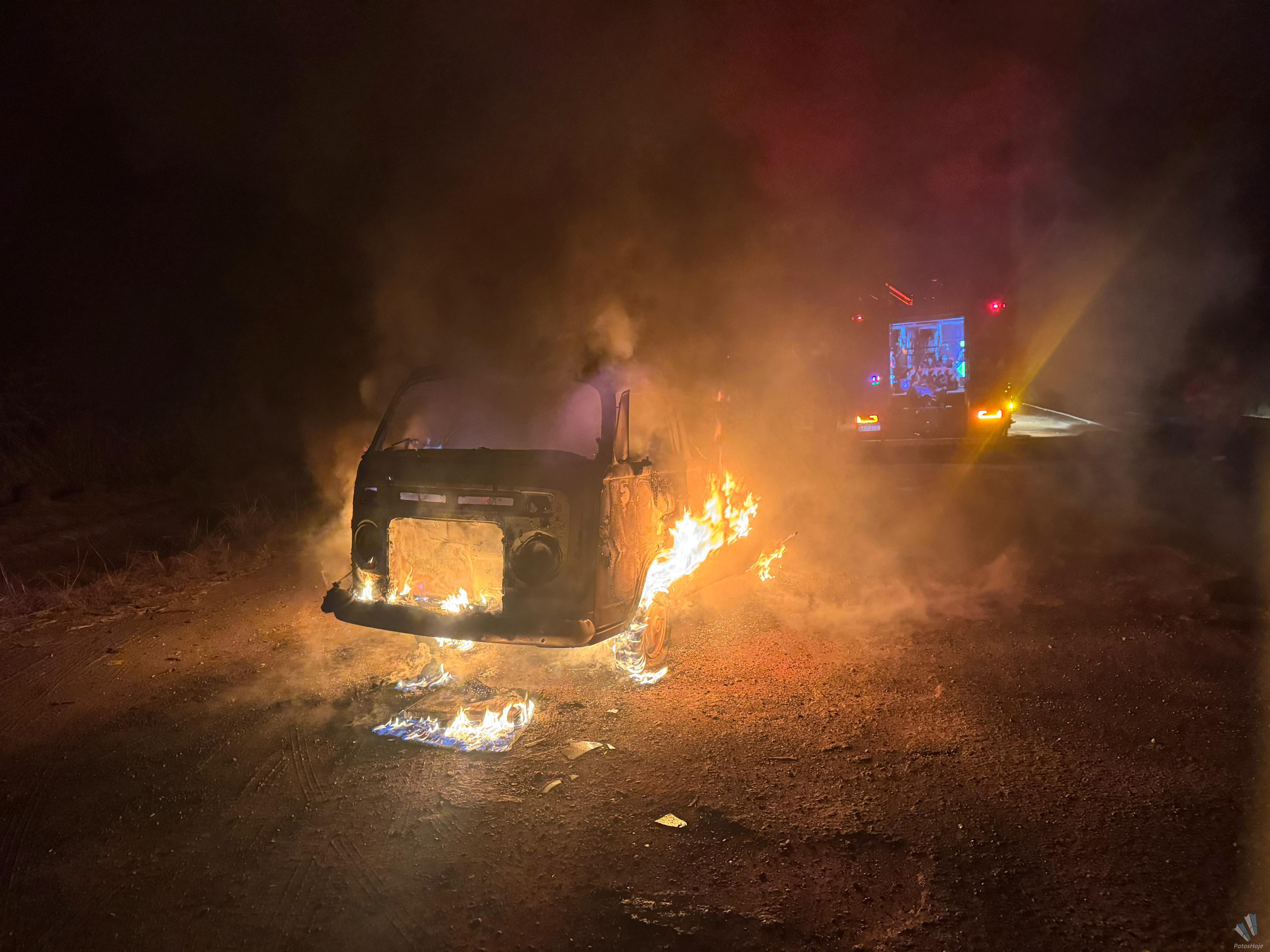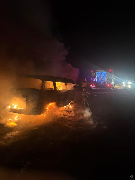 Um furgão modelo VW/Kombi pegou fogo e ficou destruído, no início da noite dessa sexta-feira (25), na BR-365, próximo à região da Serrinha, em Patos de Minas. O Corpo de Bombeiros foi acionado e combateu as chamas.