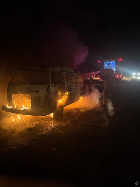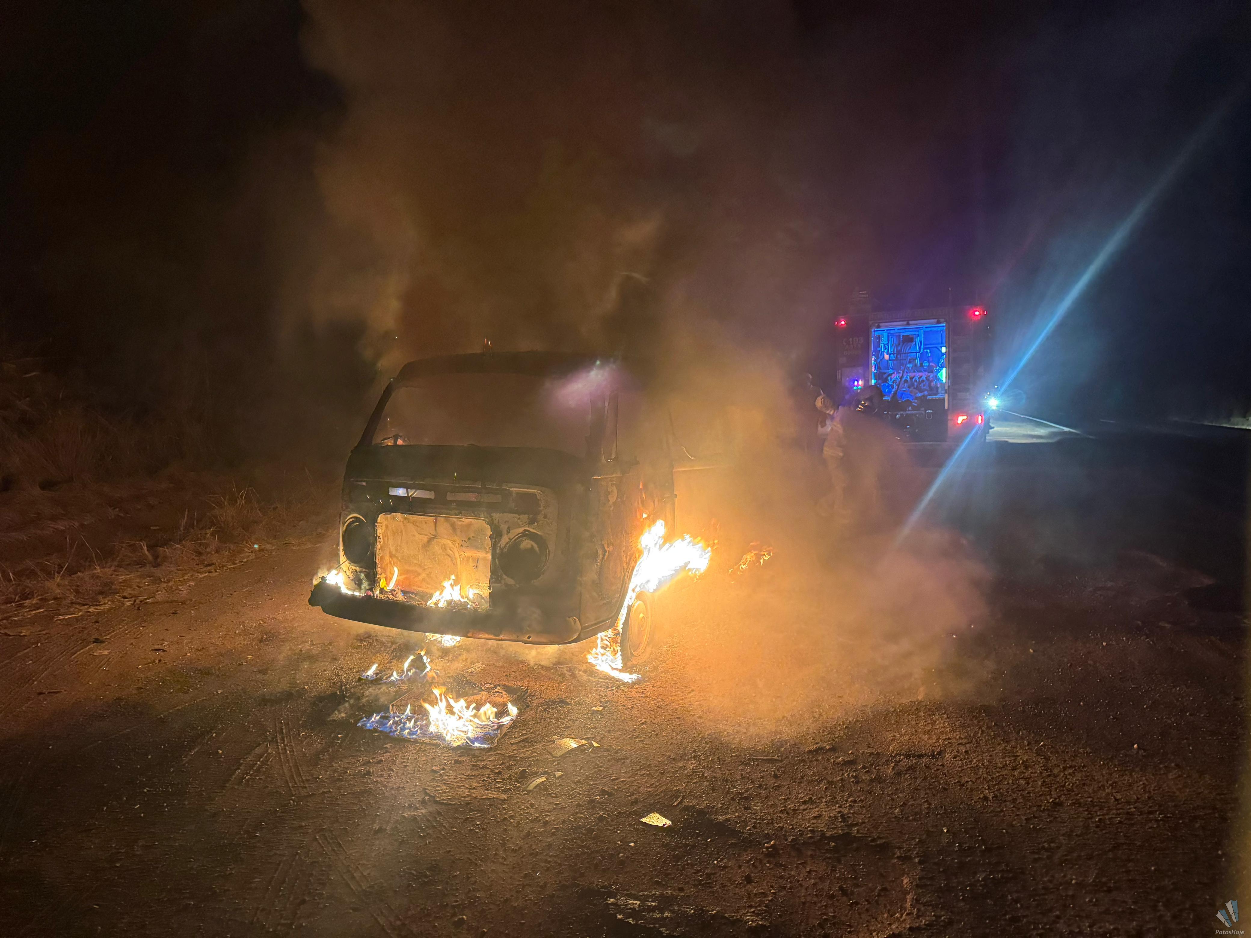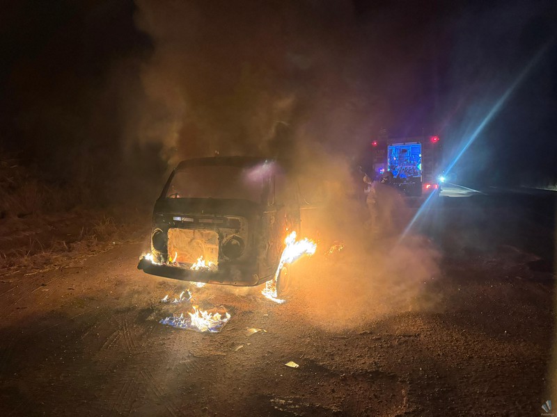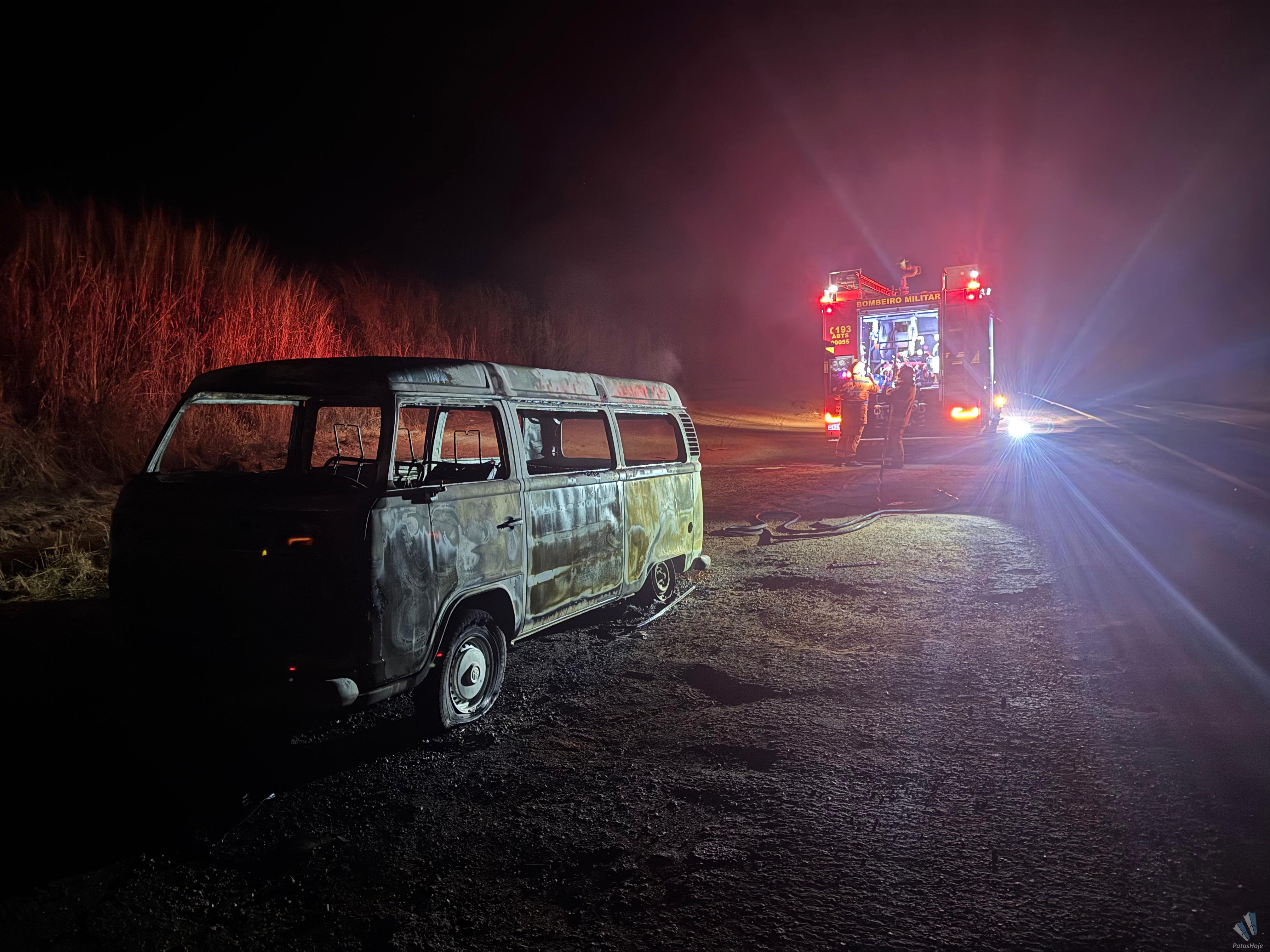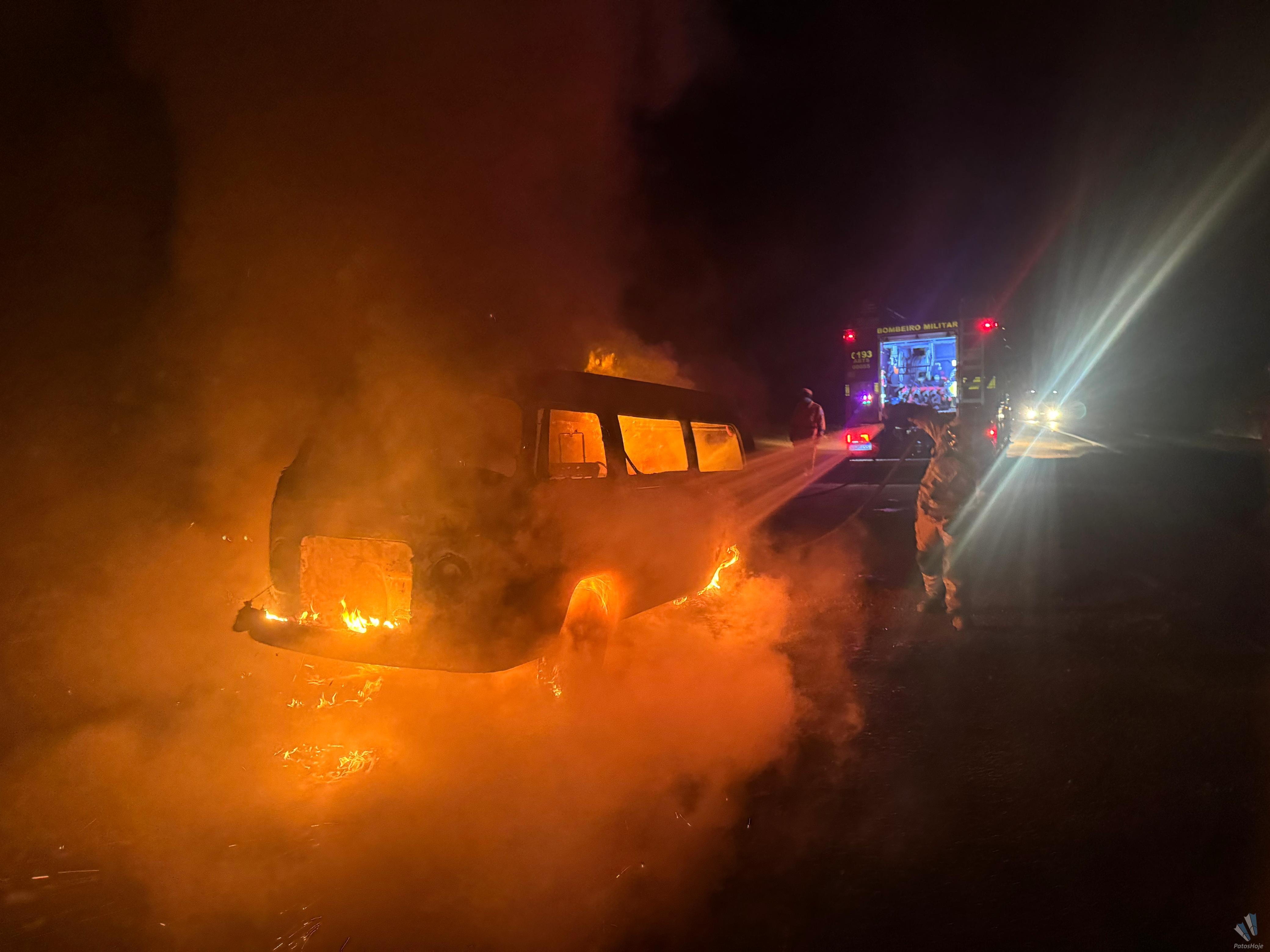 Segundo o Corpo de Bombeiros, o fogo teria começado na região do motor e se espalhou pelo veículo. Quando os militares chegaram ao local, parte do furgão já estava tomada pelas chamas.
