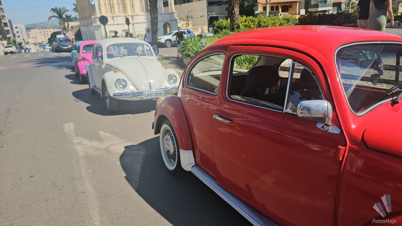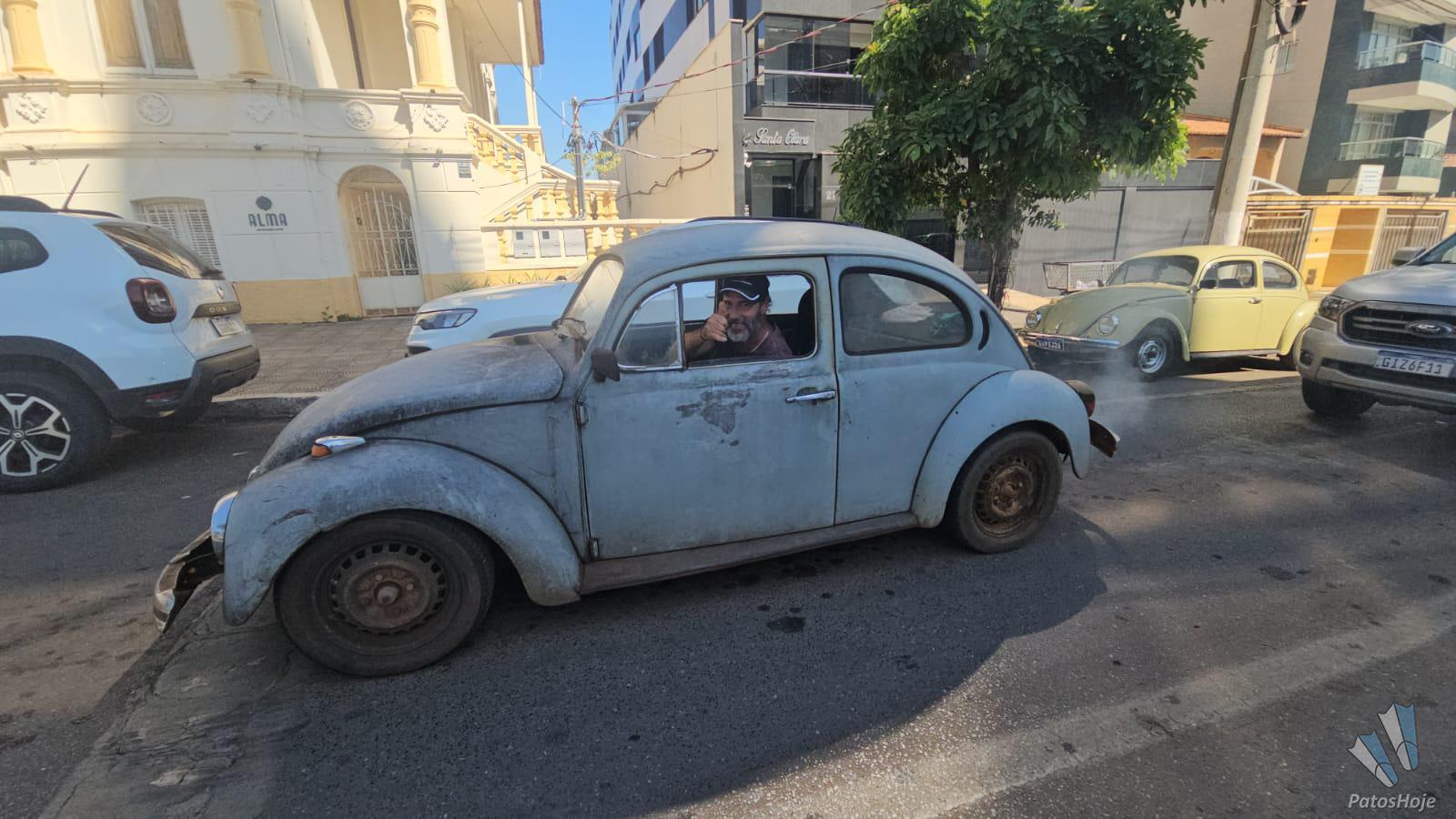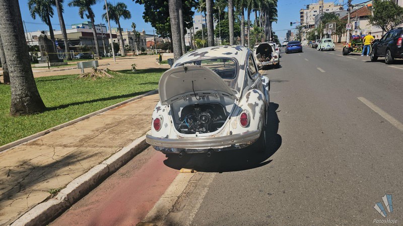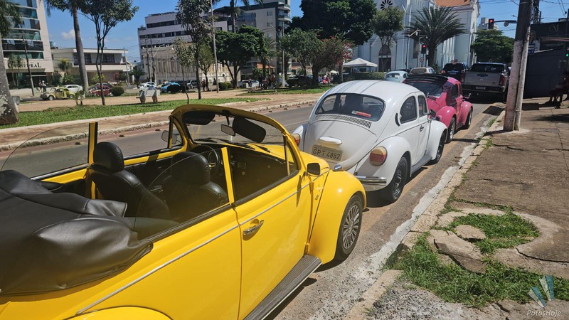 Na verdade, foi um desfile de Fuscas. Colecionadores de Patos de Minas e toda a região vieram apresentar suas máquinas. Fusca conversível, com teto solar, fusca estilizado, cor de rosa, azul e, claro, o fuscão preto eternizado na música de Almir Rogério.