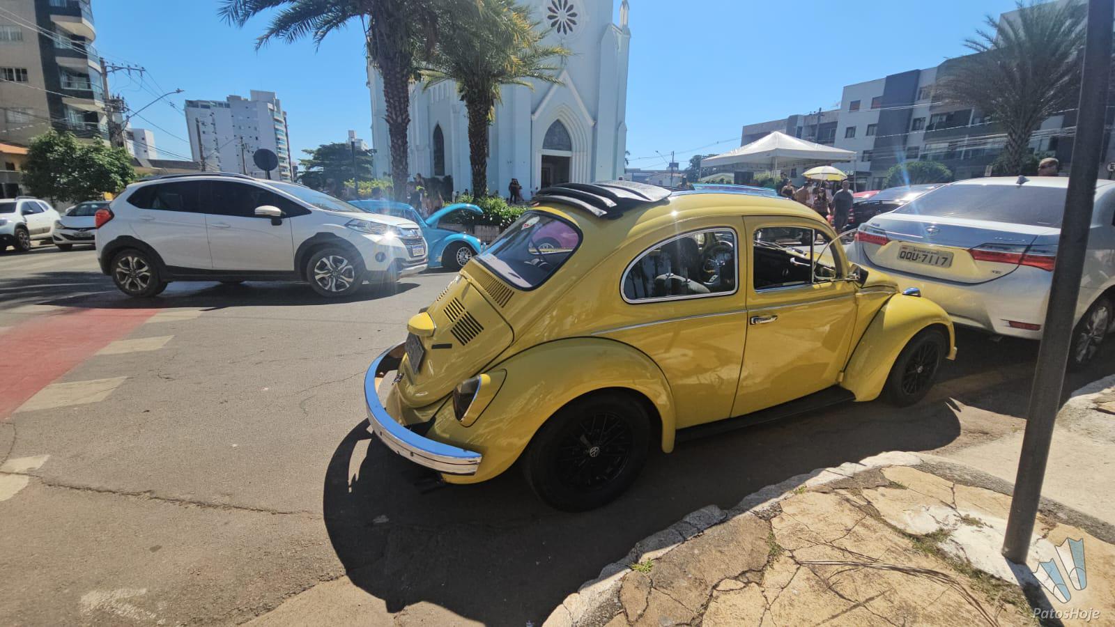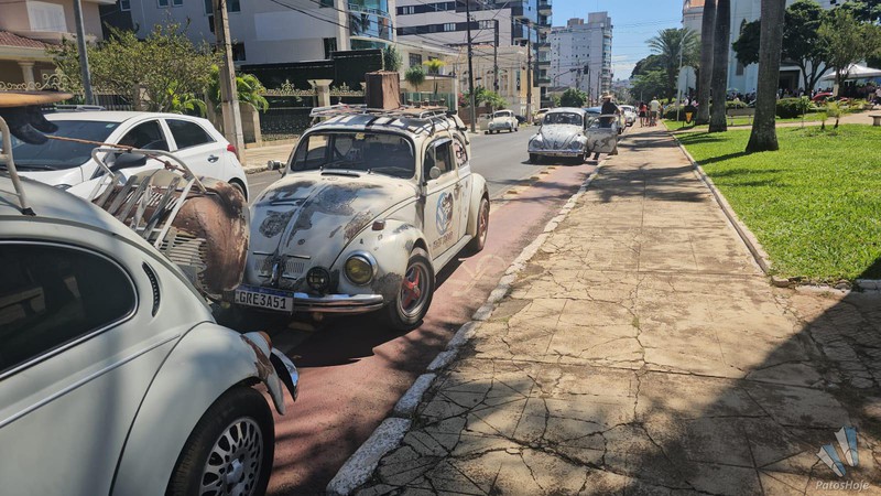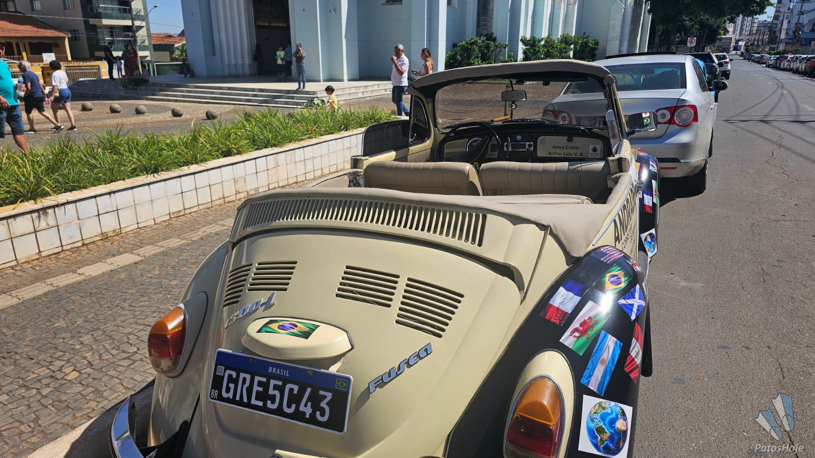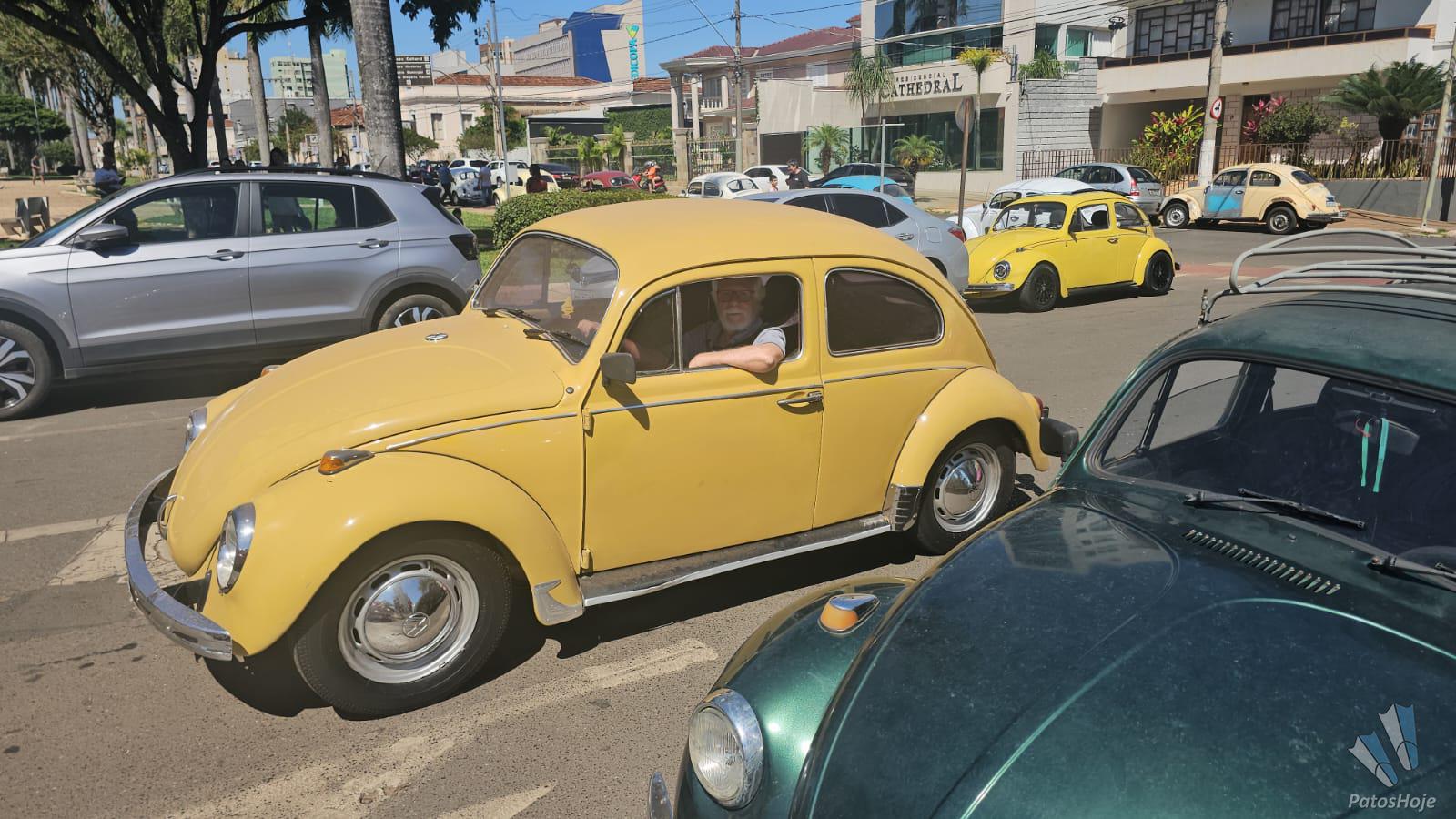 Na verdade, foi um desfile de Fuscas. Colecionadores de Patos de Minas e toda a região vieram apresentar suas máquinas. Fusca conversível, com teto solar, fusca estilizado, cor de rosa, azul e, claro, o fuscão preto eternizado na música de Almir Rogério.
