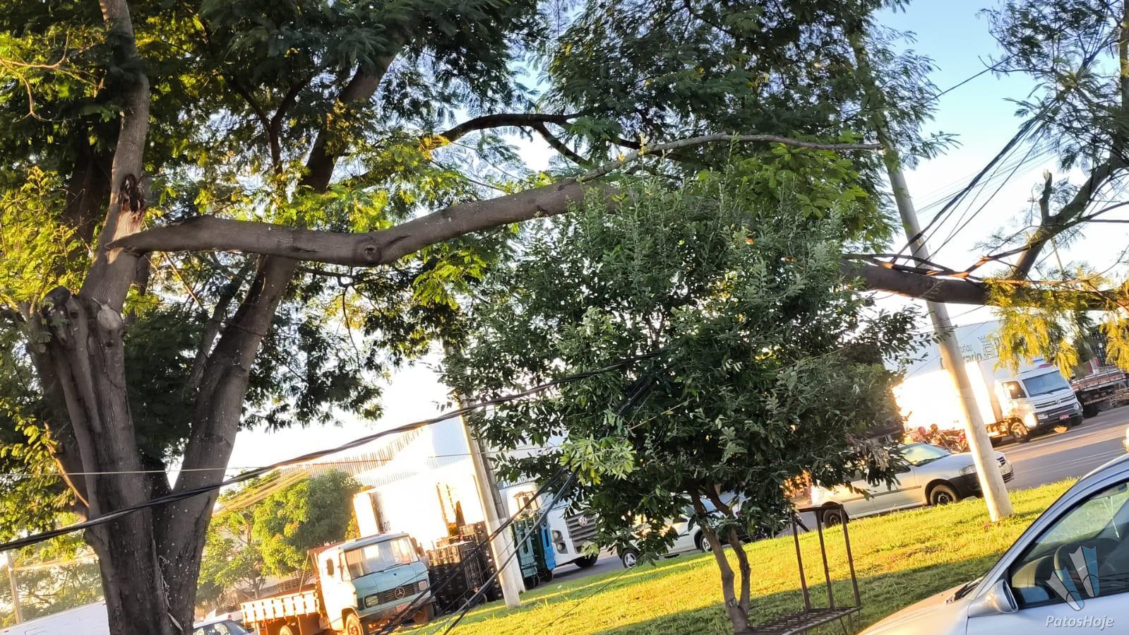 O galho de grande porte se rompeu e caiu diretamente sobre os fios da rede, atingindo também um poste e parte da fiação. Com o impacto, o poste veio a se romper, passando a oferecer risco iminente de eletrificação e acidente no local, que registra grande movimentação nas primeiras horas da manhã.
