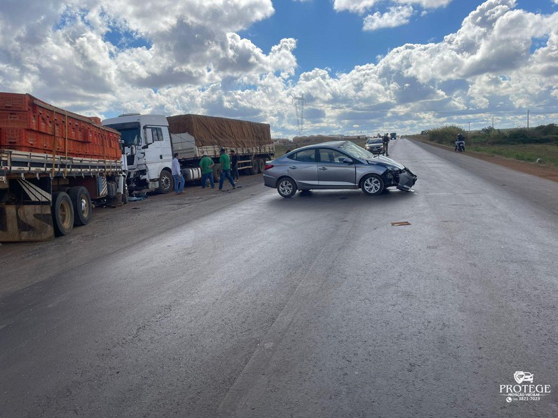 Já o motorista do caminhão VW / 17.220, de 36 anos, afirmou que trafegava no sentido São Gotardo para Rio Paranaíba quando o HB20, que estava parado no acostamento, entrou subitamente em sua frente. Após a primeira colisão, o caminhão desgovernado acabou atingindo a combinação veicular de carga que estava estacionada no outro lado da rodovia.