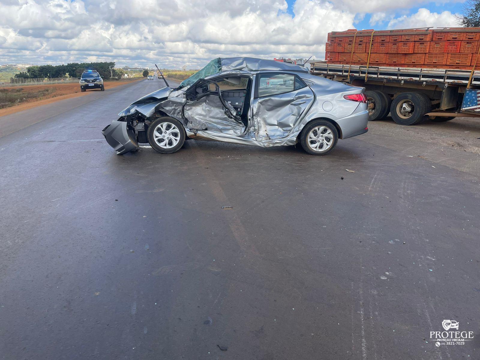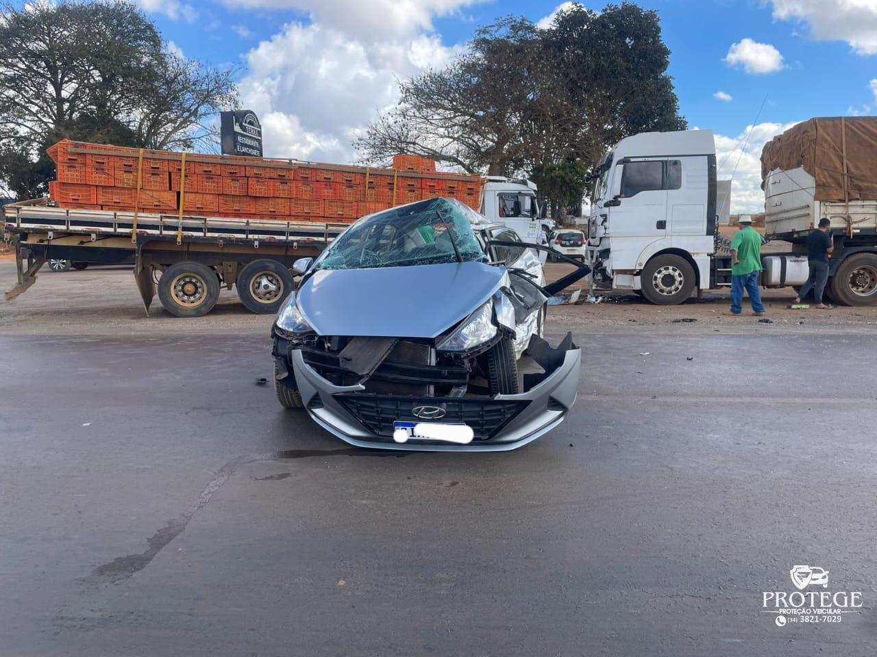 De acordo com as informações apuradas no local pela Polícia Militar Rodoviária, o condutor de 64 anos de um veículo HB20 relatou que havia parado no acostamento e, ao tentar atravessar a pista para realizar uma conversão à esquerda, não percebeu a aproximação de um caminhão que seguia pela via, resultando na colisão.
