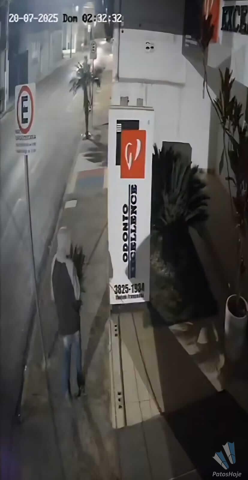 De acordo com a ocorrência policial, o furto ocorreu por volta das 2h32 da madrugada, na Rua Dora Luiza, bairro Centro. A vítima, proprietária da clínica, percebeu a falta do vaso de cimento, com aproximadamente 50 cm de altura, e ao verificar as imagens do circuito interno de câmeras, identificou o autor em ação.