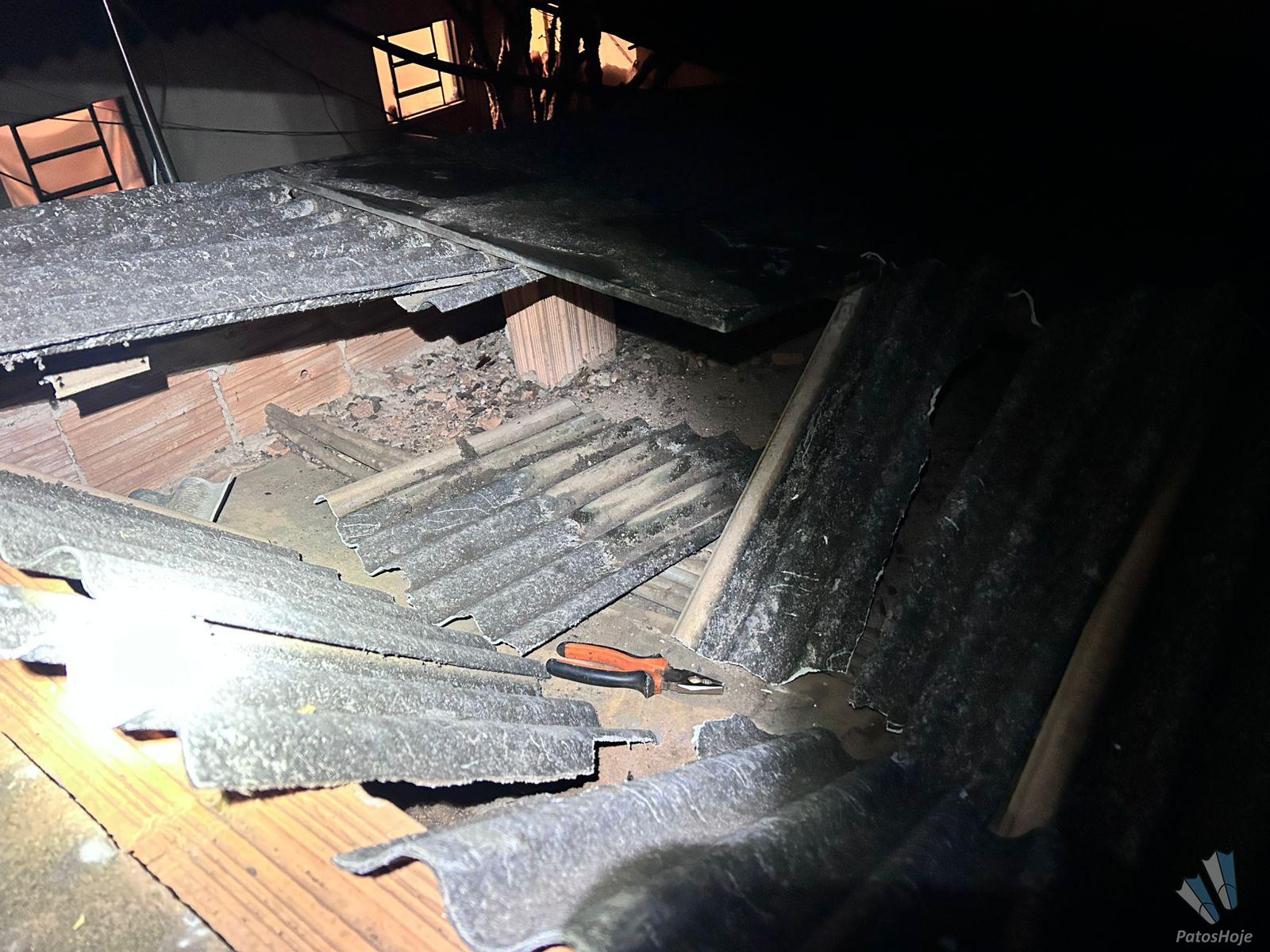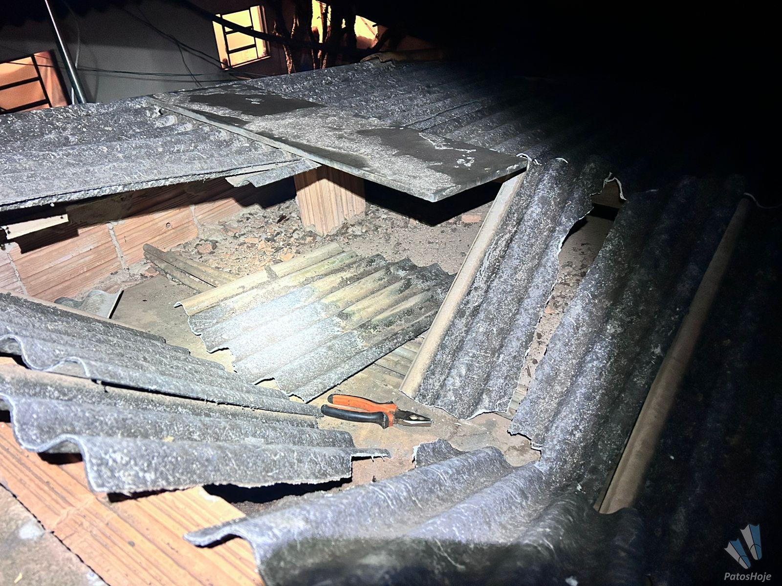A Polícia Militar foi acionada de forma anônima, informando sobre a presença de uma pessoa que estaria andando no alto do Galpão, localizado na avenida Arlindo Porto. O imóvel está desocupado, com placa de aluguel. Ao chegarem ao local, os policiais encontraram o cadeado cortado e perceberam que havia gente ali.
