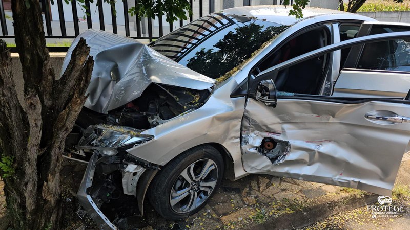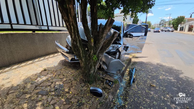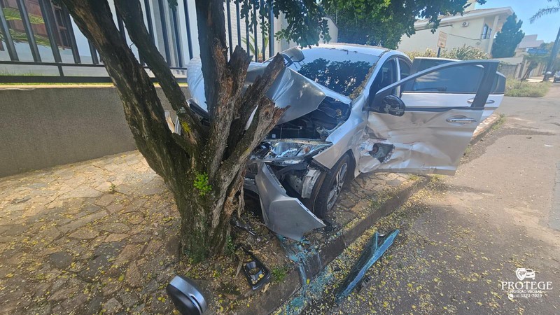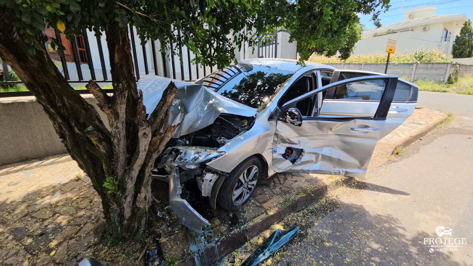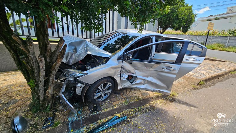 O veículo Honda City seguia pela Rua Pedro quando foi surpreendido pela condutora do VW Gol avançando a parada obrigatória. Com o impacto da batida, o condutor do Honda City perdeu o controle da direção, subiu na calçada e atingiu em cheio uma árvore que existe no local.