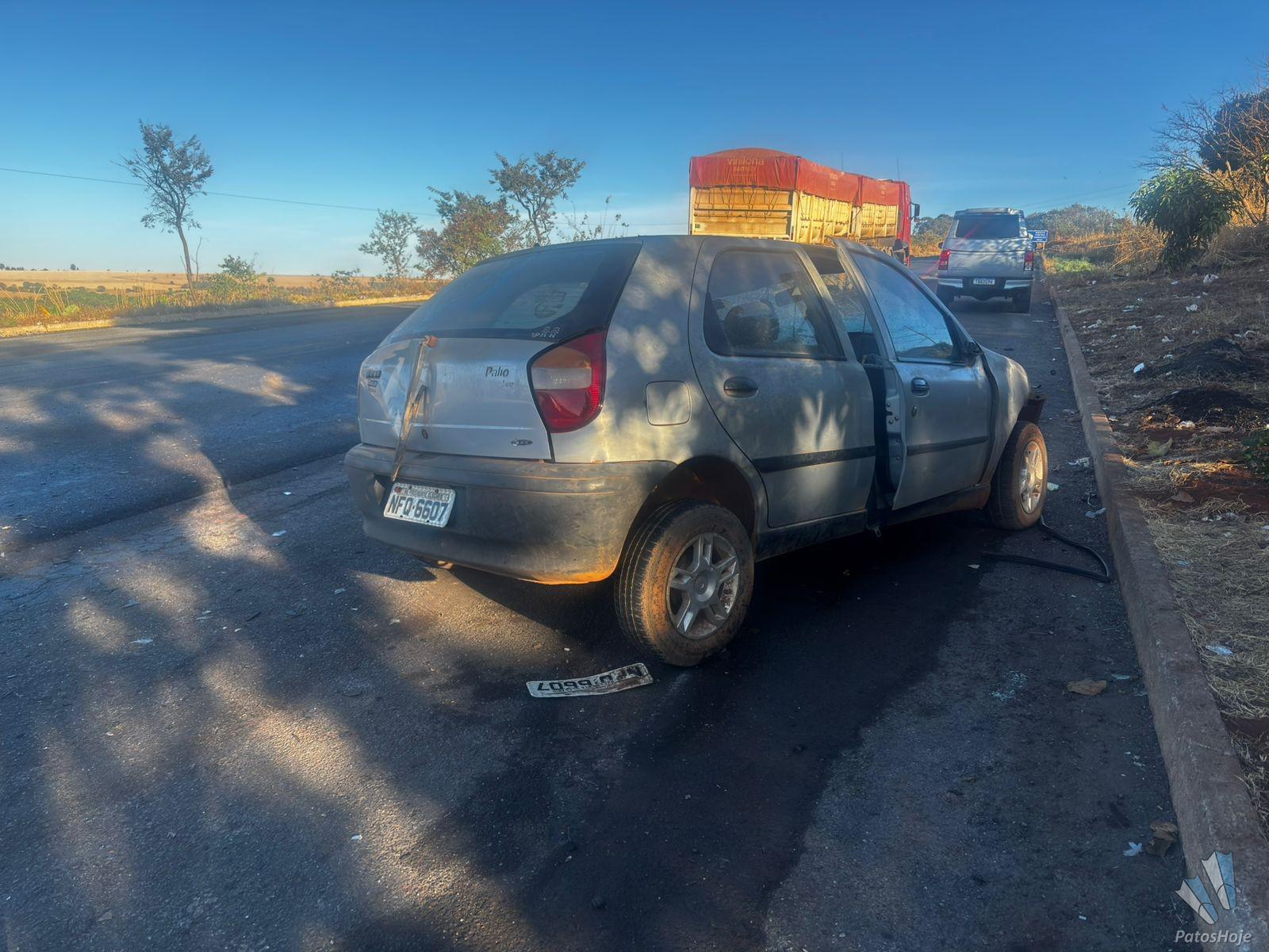 Um idoso de 80 anos morreu em um acidente envolvendo um carro e um caminhão, na manhã desta terça-feira (02), no trevo do bairro Andorinhas com a MGC354, em Presidente Olegário. A vítima conduzia o carro e teria batido no caminhão. A filha do idoso, de 56 anos, estava no banco passageiro e sofreu ferimentos.