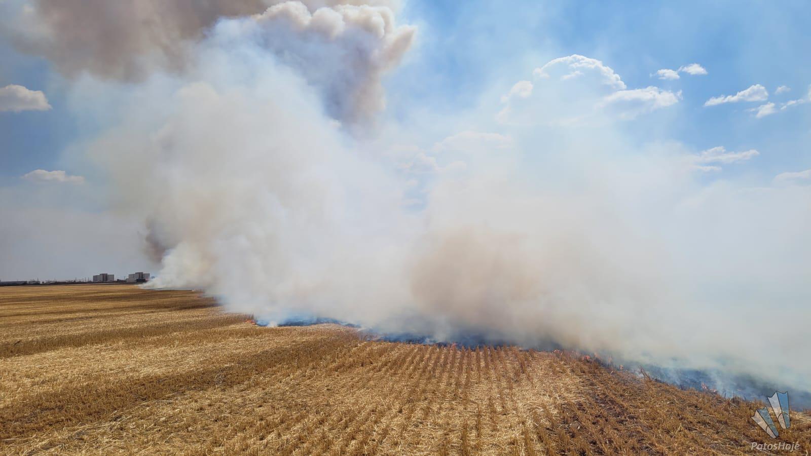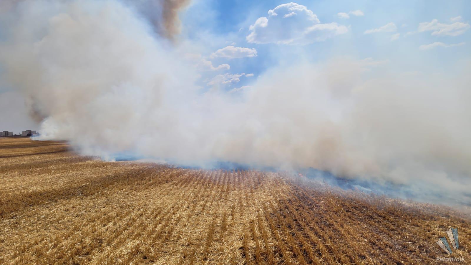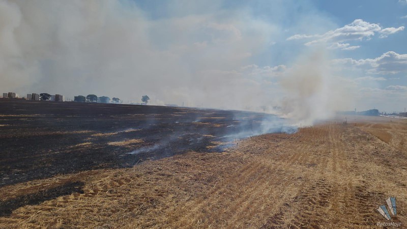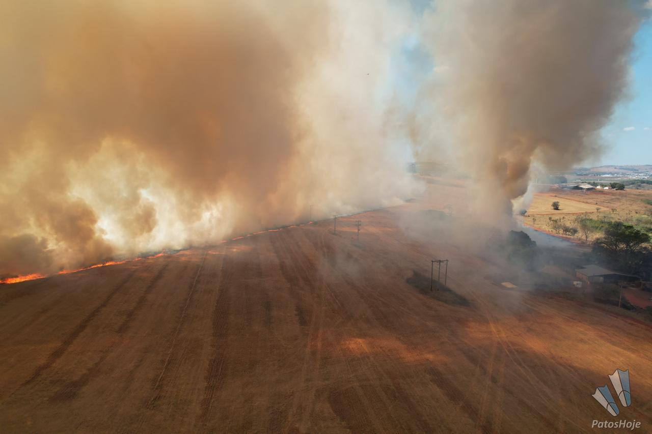Um incêndio em uma palhada de uma lavoura já colhida de milho provocou uma enorme fumaça densa que encobriu o bairro Alto da Serra, em Patos de Minas, na tarde deste domingo (07). Aproximadamente 60 hectares foram destruídos pelo fogo. Simultaneamente, um incêndio atingiu uma palhada de sorgo, próximo a estrada da Serrinha.