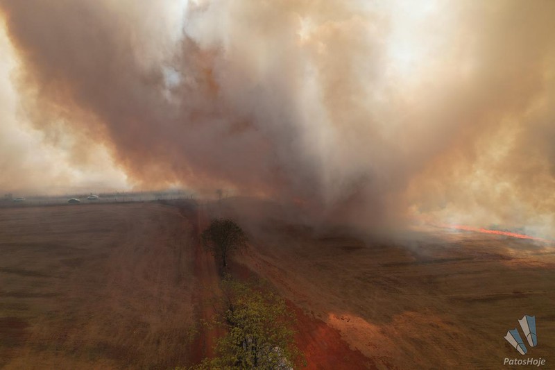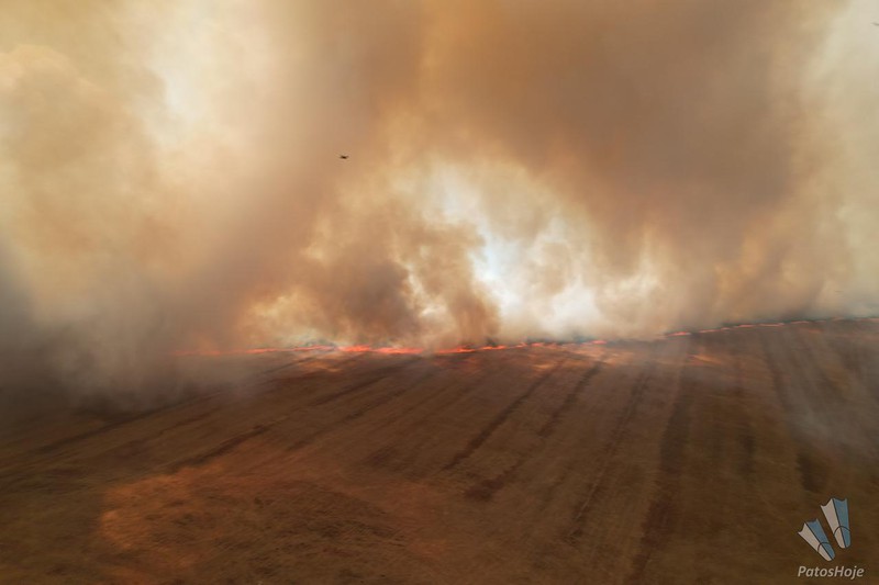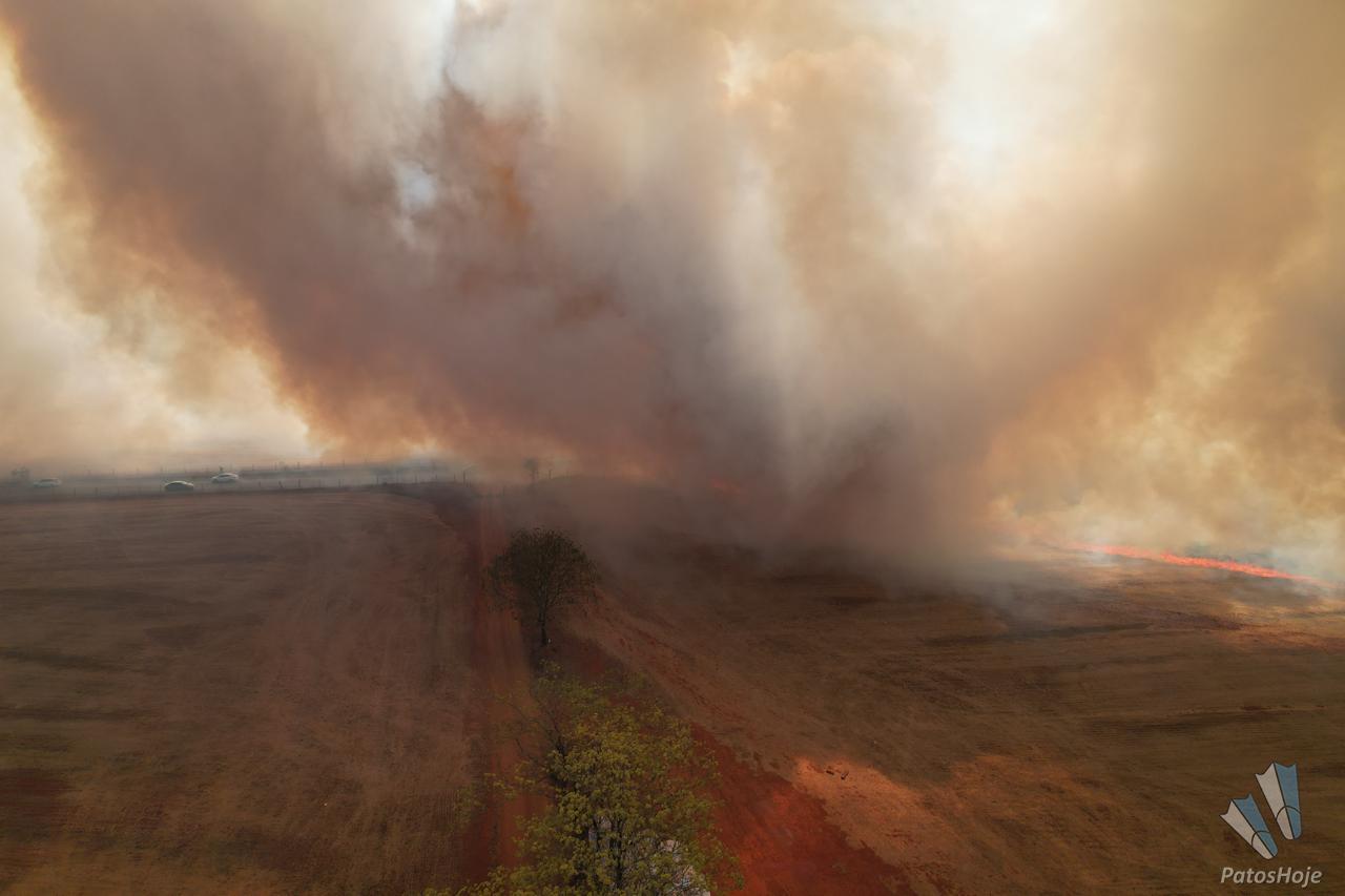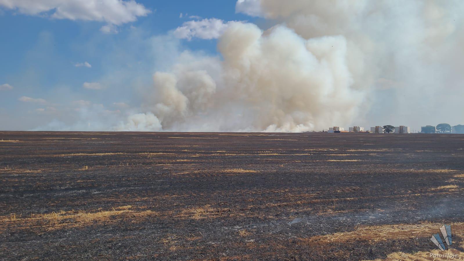 Um incêndio em uma palhada de uma lavoura já colhida de milho provocou uma enorme fumaça densa que encobriu o bairro Alto da Serra, em Patos de Minas, na tarde deste domingo (07). Aproximadamente 60 hectares foram destruídos pelo fogo. Simultaneamente, um incêndio atingiu uma palhada de sorgo, próximo a estrada da Serrinha.