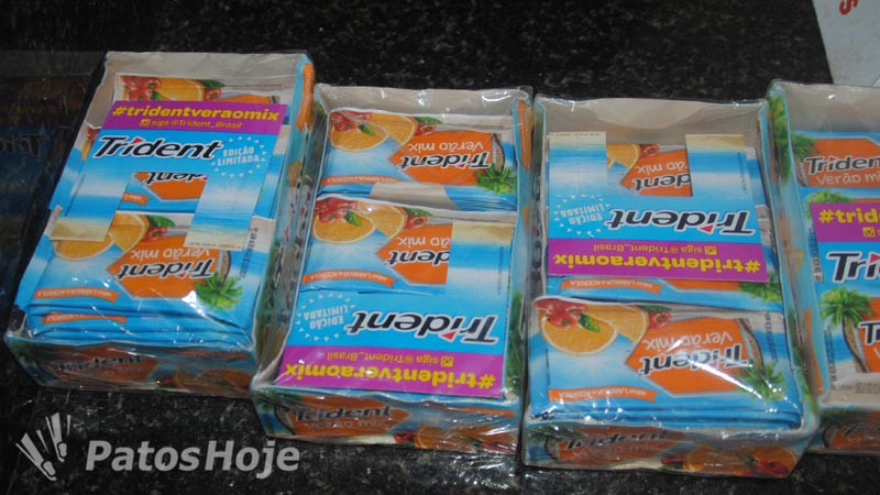 Quando os policiais chegaram, o jovem ainda estava com 4 tridents no bolso. As imagens das câmeras de segurança foram analisadas ficando constatado que ele havia furtado uma série de produtos no hipermercado no dia 28 de outubro. Diante disso, os policiais foram até a casa dele onde encontraram dezenas de tridents, cadeados, um alicate e R$240,00 em dinheiro.