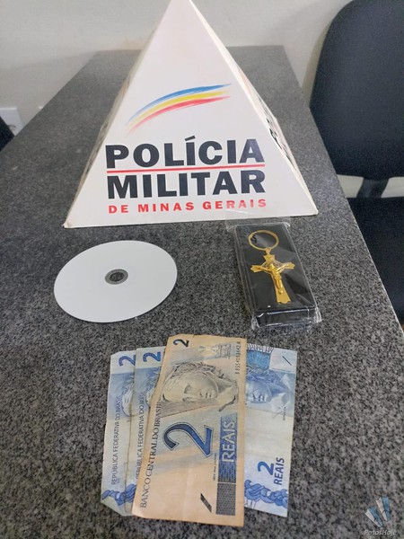 Dentro da mochila que estava com ele, foi localizada a quantia de R$ 8,00 em dinheiro e um crucifixo dourado ainda embalado. Diante disso, ele foi preso em flagrante delito e encaminhado para a Delegacia da Polícia Civil de Rio Paranaíba para as demais providências.