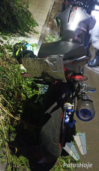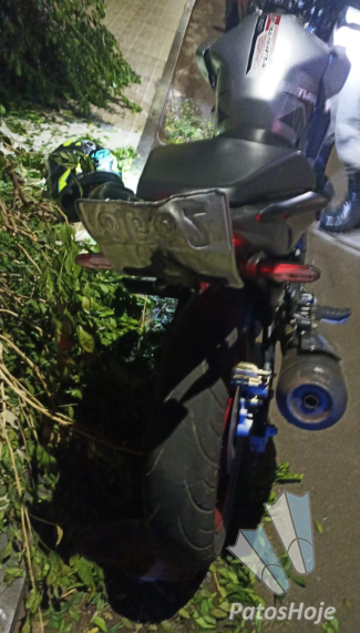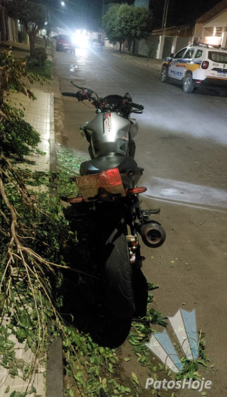 Um jovem de 27 anos foi preso em flagrante na noite desse sábado (24) após tentar fugir da Polícia Militar em uma moto com dispositivo para esconder a placa e cair durante a perseguição no bairro Aurélio Caixeta, em Patos de Minas. Os policiais constataram que ele não possuía CNH e usava o dispositivo porque tem o costume de avançar o sinal vermelho.