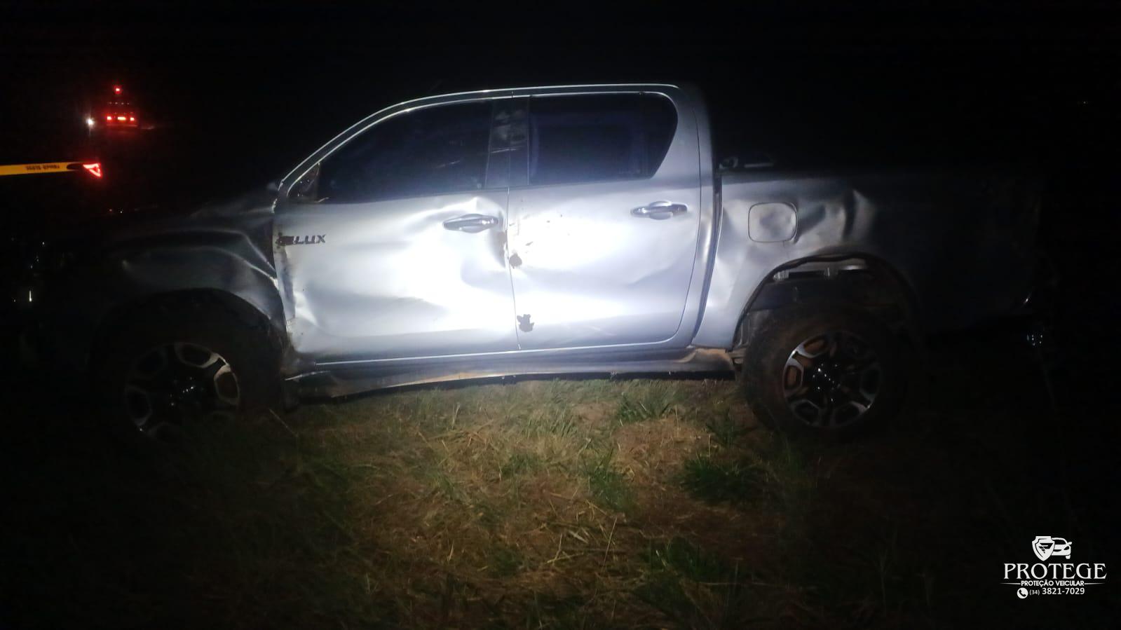 De acordo com informações da Polícia Militar Rodoviária, a equipe foi acionada por volta das 22h10 para atender um sinistro de trânsito sem vítimas. No local, os militares se depararam com uma caminhonete Toyota Hilux de cor prata que havia capotado após o condutor perder o controle ao passar pelo trevo.