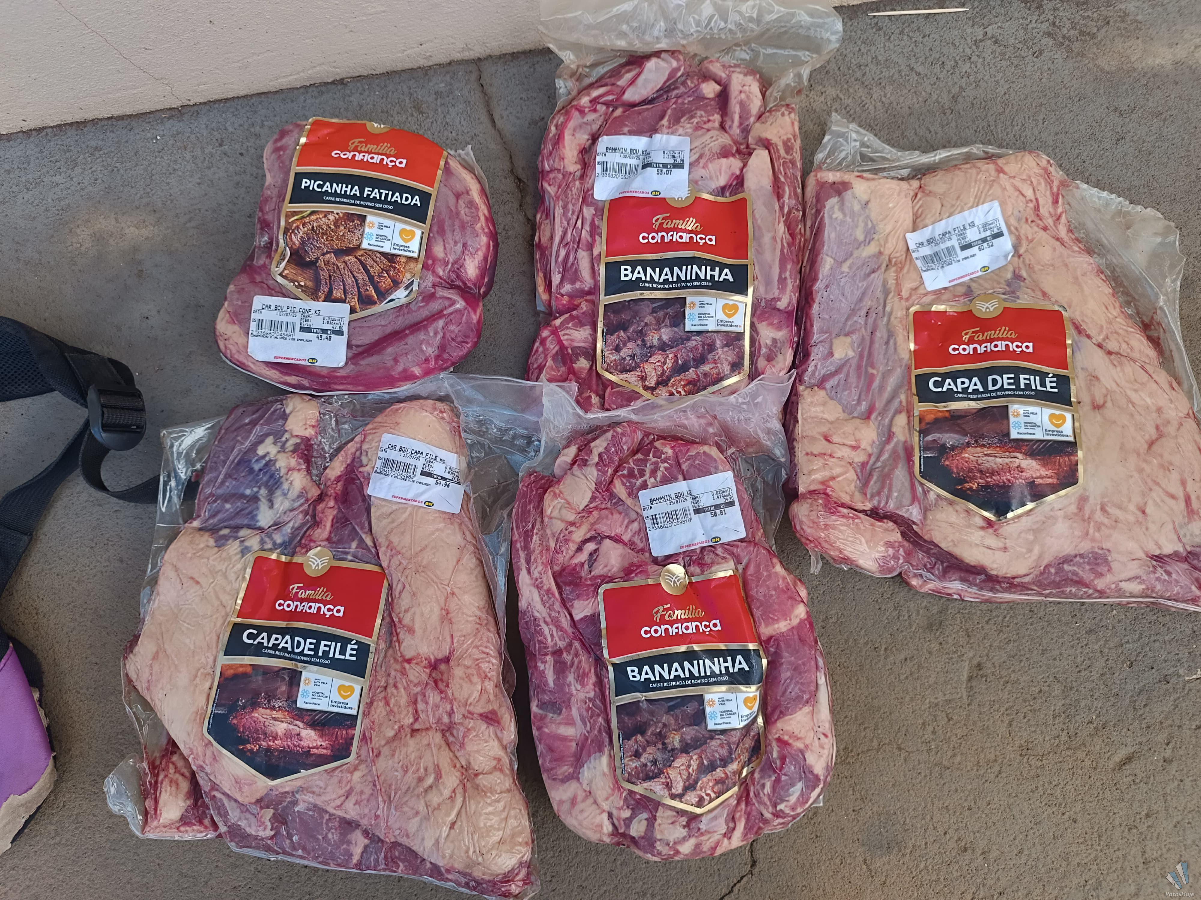 Ele foi conduzido para a Delegacia de Plantão de Patos de Minas por furto. As carnes ainda estavam conservadas e foram restituídas ao supermercado.