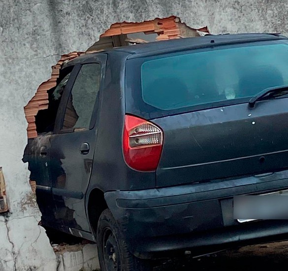 De acordo com informações da Polícia Militar, a condutora seguia pela Rua Teodoro Gonçalves quando perdeu o controle da direção do Pálio, vindo a colidir violentamente contra o muro da casa.