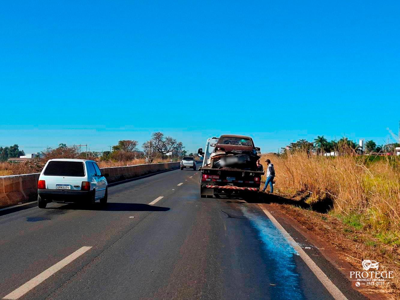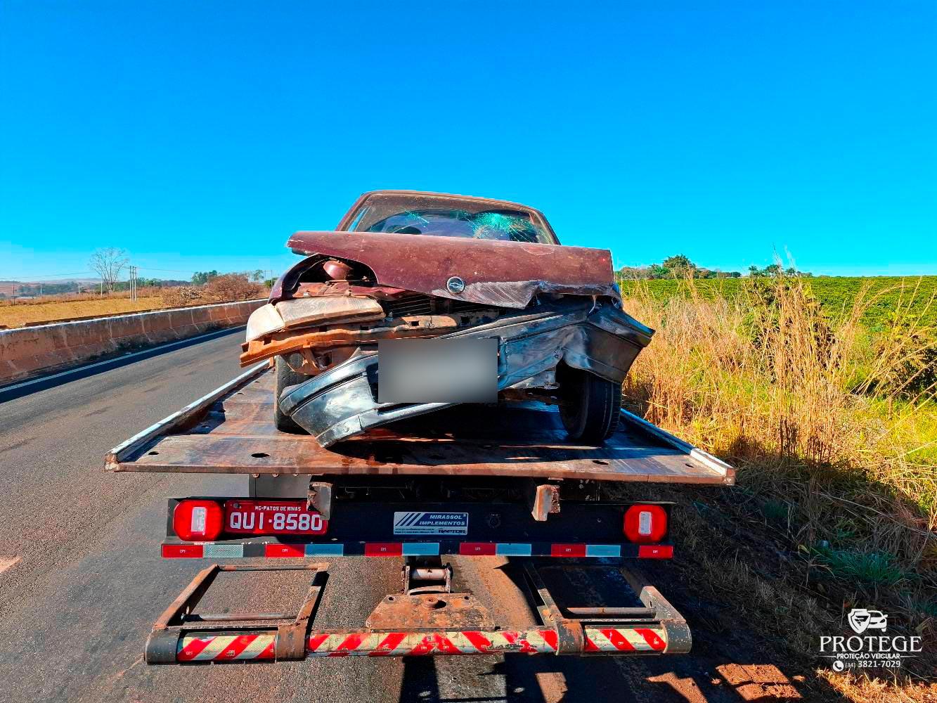 De acordo com a Polícia Militar Rodoviária, o condutor de 34 anos seguia pela rodovia sentido Patos de Minas a Lagoa Formosa quando, ao atingir um trecho da pista molhada com leite, perdeu o controle do veículo. O carro derrapou, rodou e se chocou contra a mureta de concreto que divide a pista, saindo em seguida da faixa de rolamento e parando na faixa de domínio.