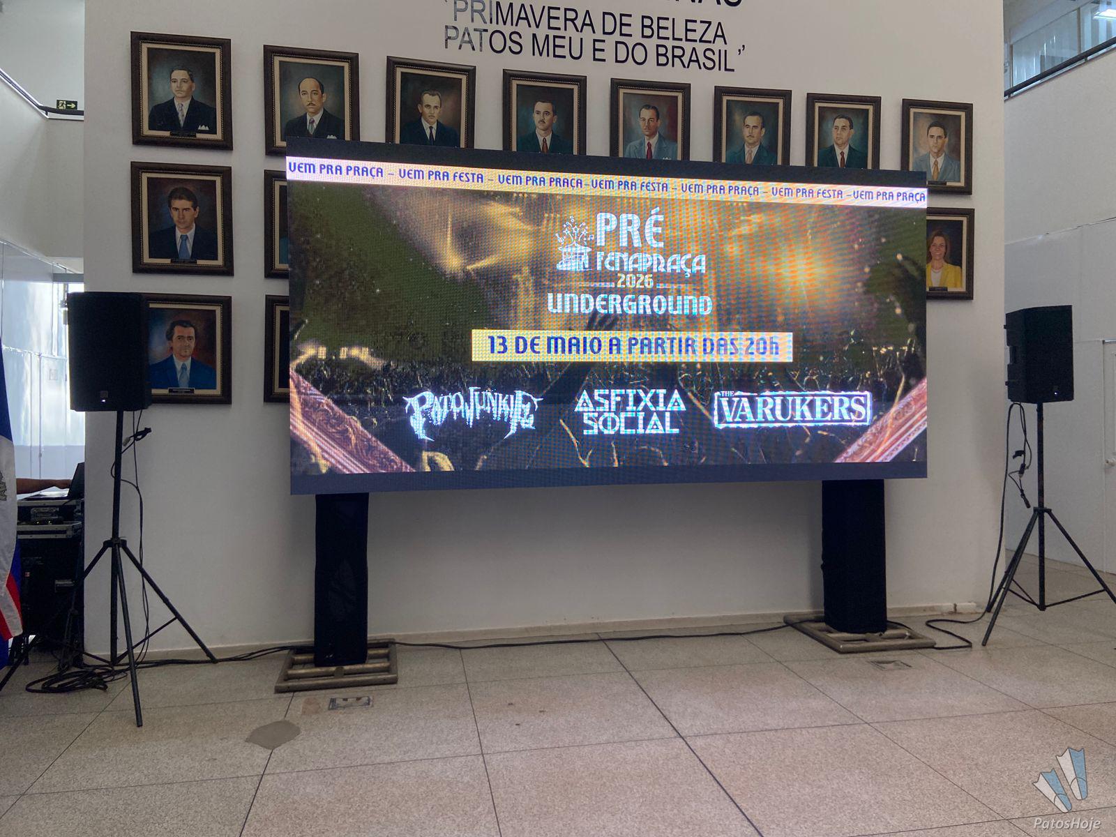 A Prefeitura de Patos de Minas anunciou, na tarde desta sexta-feira (10), a programação da Fenapraça 2026. O evento acontecerá dos dias 15 a 24 de maio, na Avenida Getúlio Vargas, no Centro de Patos de Minas. Umas das novidades deste ano é a “Pré-Fenapraça Underground”, que contará com uma banda inglesa de punk/hardcore.