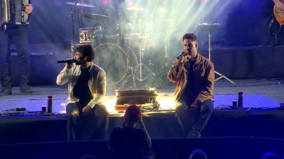 Marlon e Meiron se sentam no palco e cantam sucessos sertanejos pertinho do público; veja ao vivo