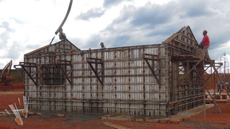 As casas são construídas sobre uma base de concreto. As ferragens são armadas, já com a tubulação de água quente e fria, esgoto e iluminação. Em seguida, são colocadas as formas de alumínio, que são preenchidas com concreto. O engenheiro Luciano Silva explica que este método, além de economizar tempo, também contribui com o meio ambiente, já que não tem desperdício e não gera resíduos.