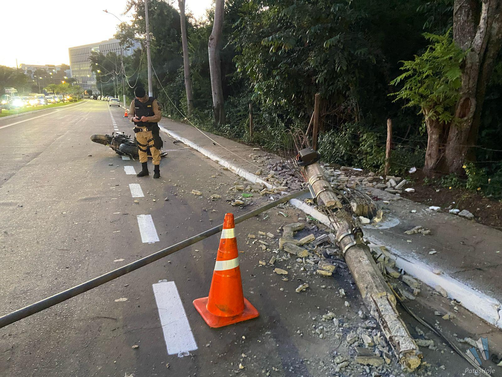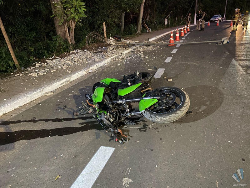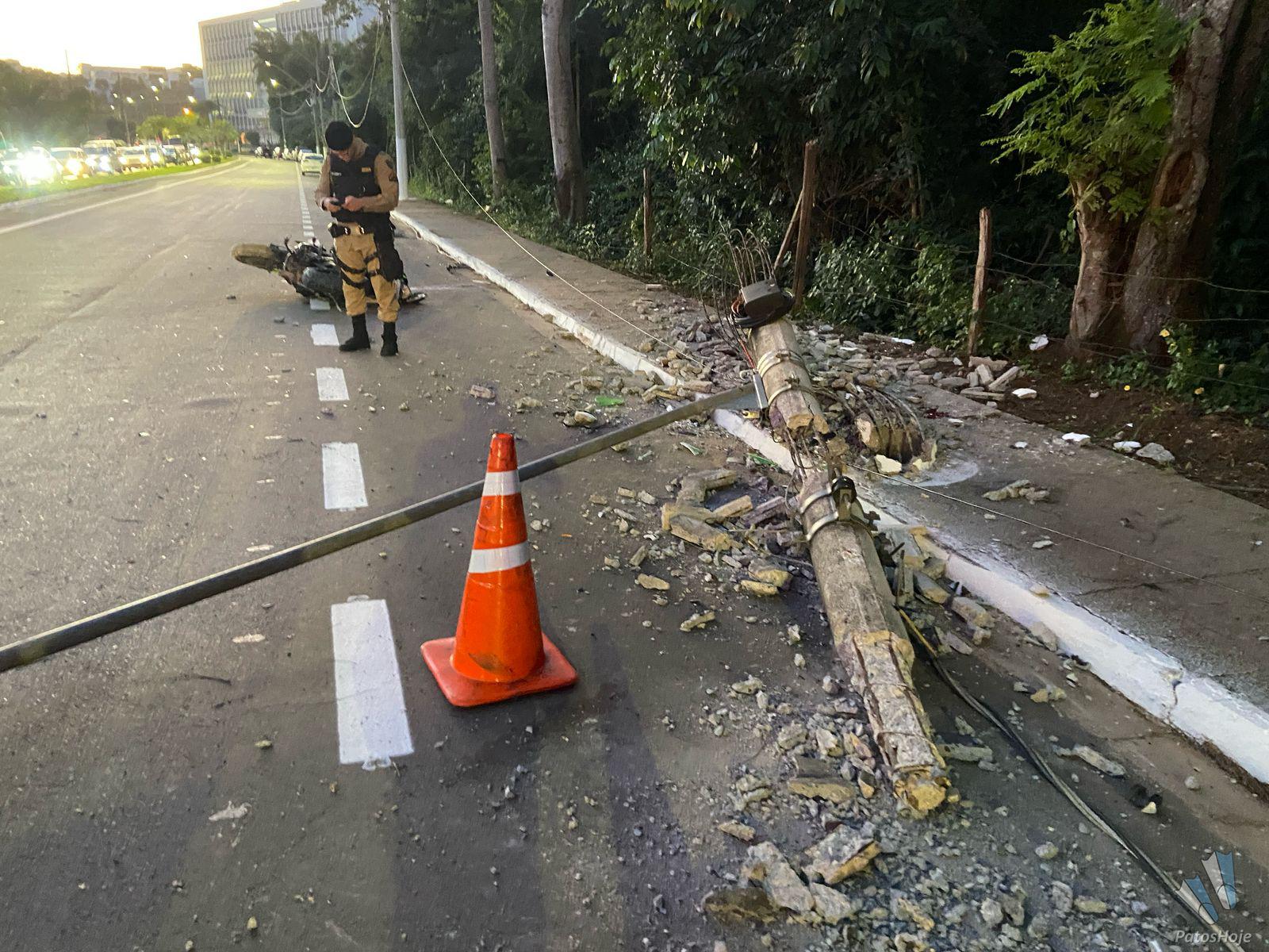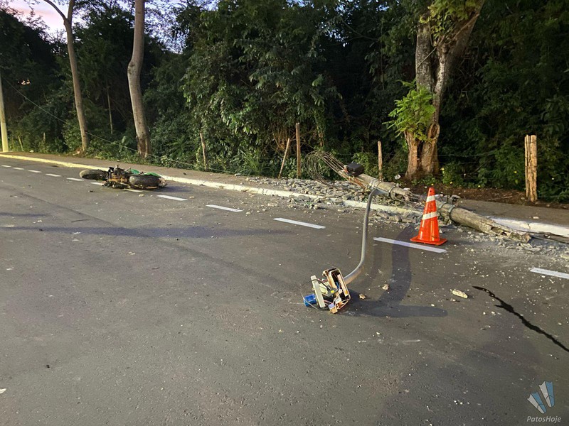 Um motociclista de 19 anos ficou gravemente ferido em um acidente ocorrido no final da tarde desta terça-feira (20), na avenida Padre Almir. Testemunhas informaram que ele perdeu o controle da direção ao passar por uma curva e acertou em cheio o poste de iluminação pública, que ficou destruído. Ele foi entubado e encaminhado para o Hospital Regional Antônio Dias.