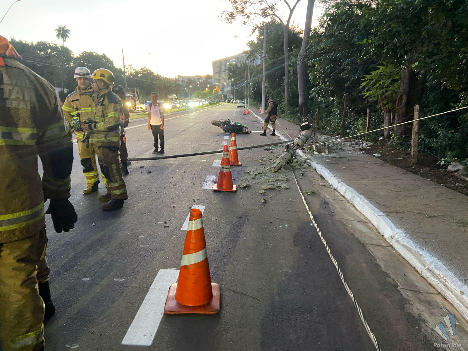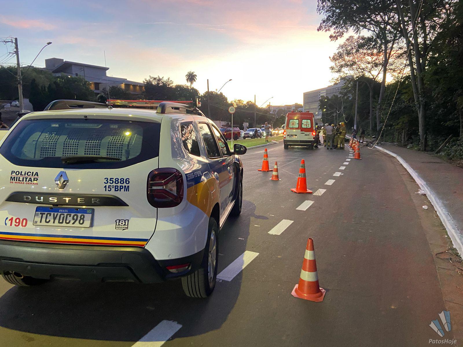 A Polícia Militar interditou o trânsito no sentido ao fórum, a partir do condomínio. A Perícia Civil esteve no local e vai confirmar o que motivou o acidente. Funcionários de uma empresa terceirizada da CEMIG fazem os reparos na rede elétrica e a substituição do poste.