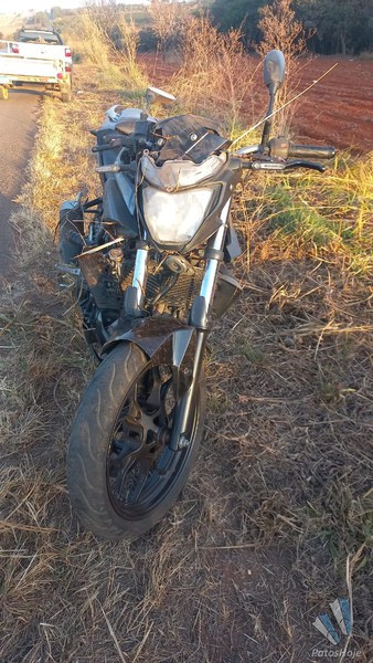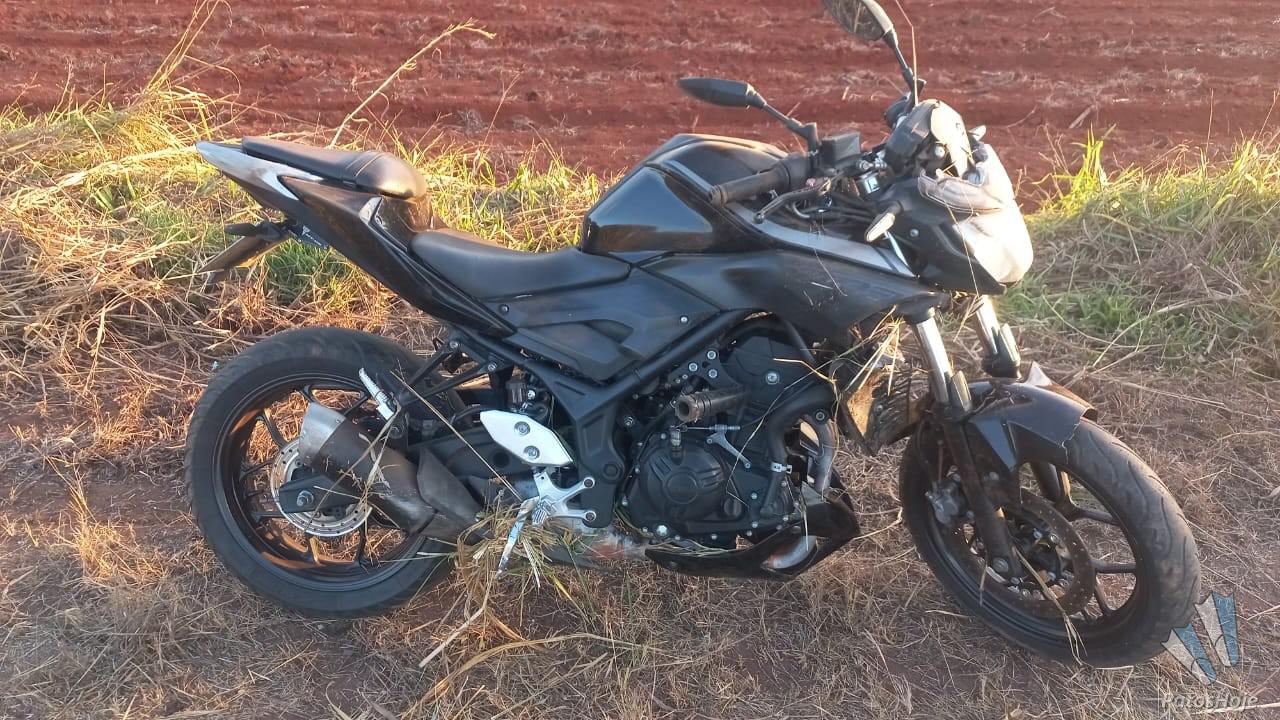 A moto, que estava em situação regular, foi liberada para uma testemunha que compareceu ao local. O veículo apresentou danos materiais em decorrência da queda.