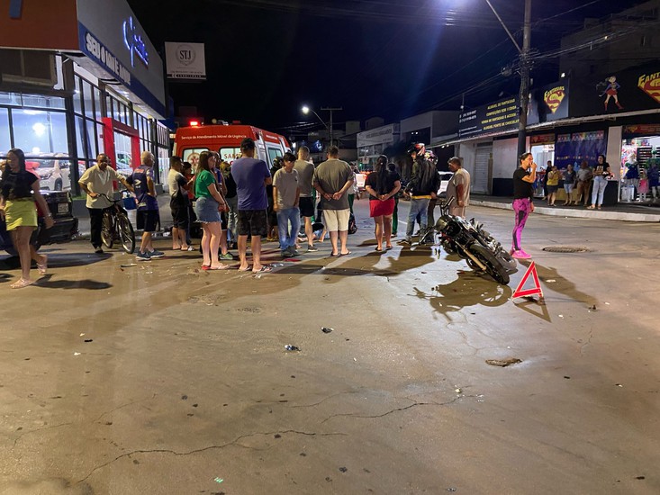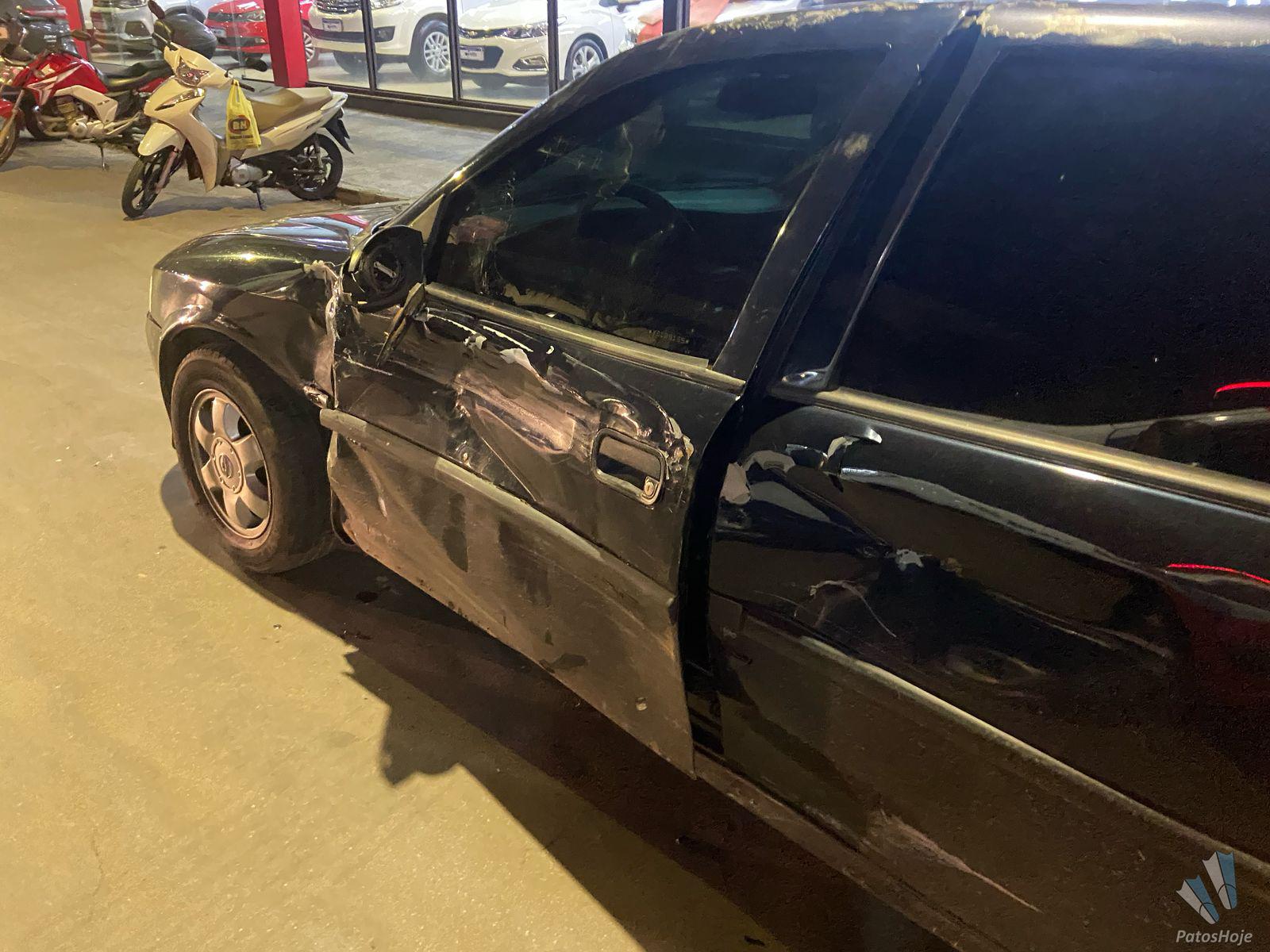 O carro teve danos na lateral, onde ocorreu a batida. A moto teve danos na parte frontal.
