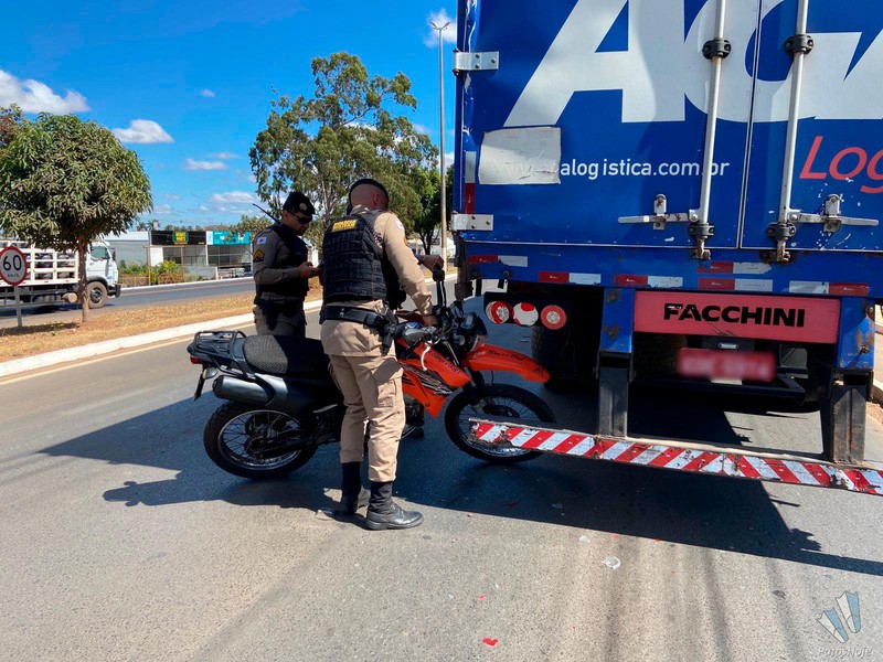 A moto chegou ficou presa no para-choque da carreta. O motociclista foi arremessado ao solo e, segundo testemunhas, chegou a sofrer perda de memória. Ele recebeu os primeiros cuidados do Corpo de Bombeiros e foi encaminhado para o Hospital Regional para receber atendimento médico. O trânsito chegou a ficar interditado na via pista lateral.