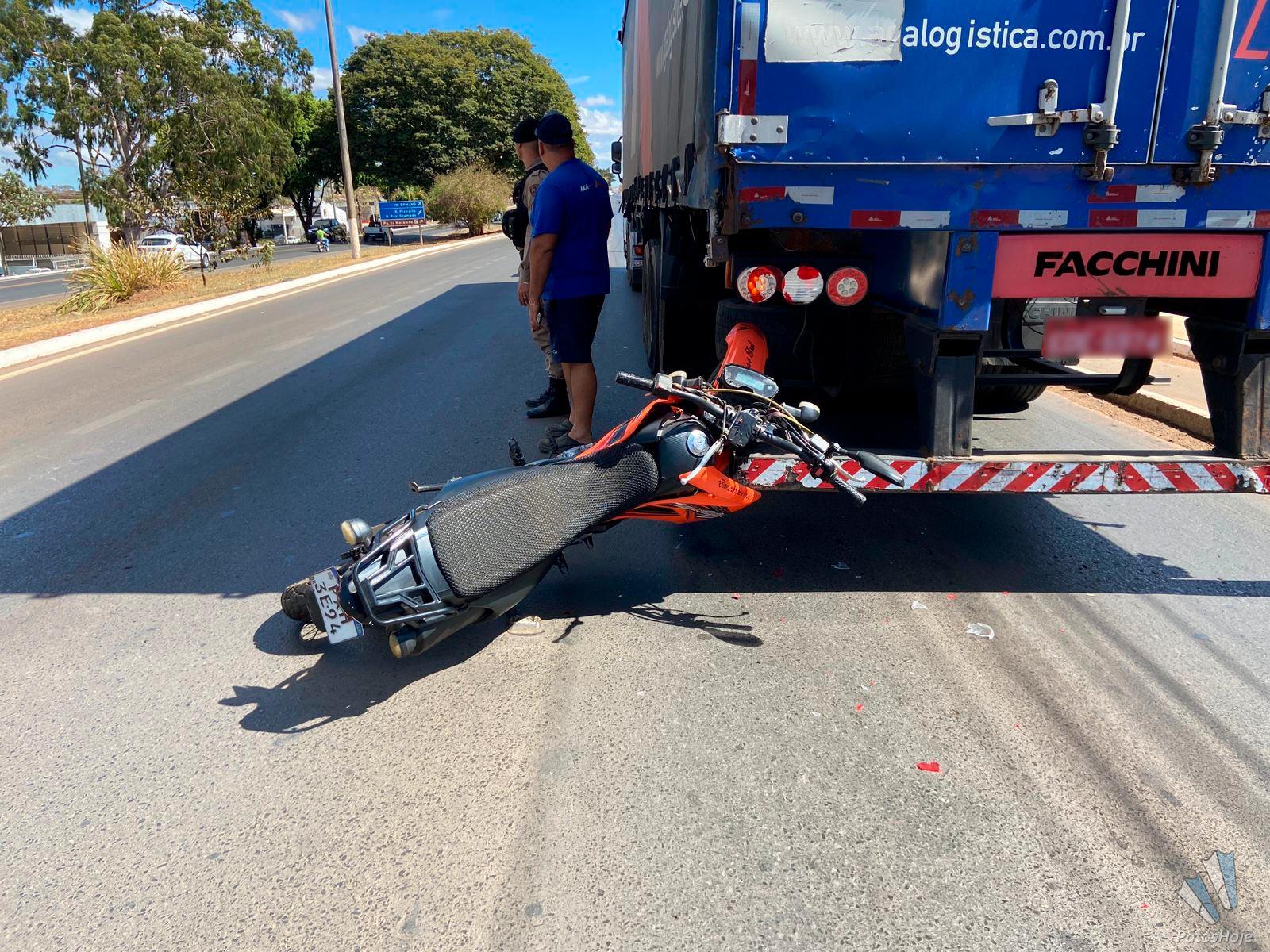 O acidente na pista lateral da avenida JK, sentido Trevo da Pipoca ao centro da cidade. Segundo o sargento Héctor da Polícia Militar, testemunhas informaram que a carreta estava estacionada próxima à Coca-Cola, quando foi atingida na traseira pelo motociclista. O motorista contou que parou no local e foi até a empresa para perguntar como poderia fazer o acesso.