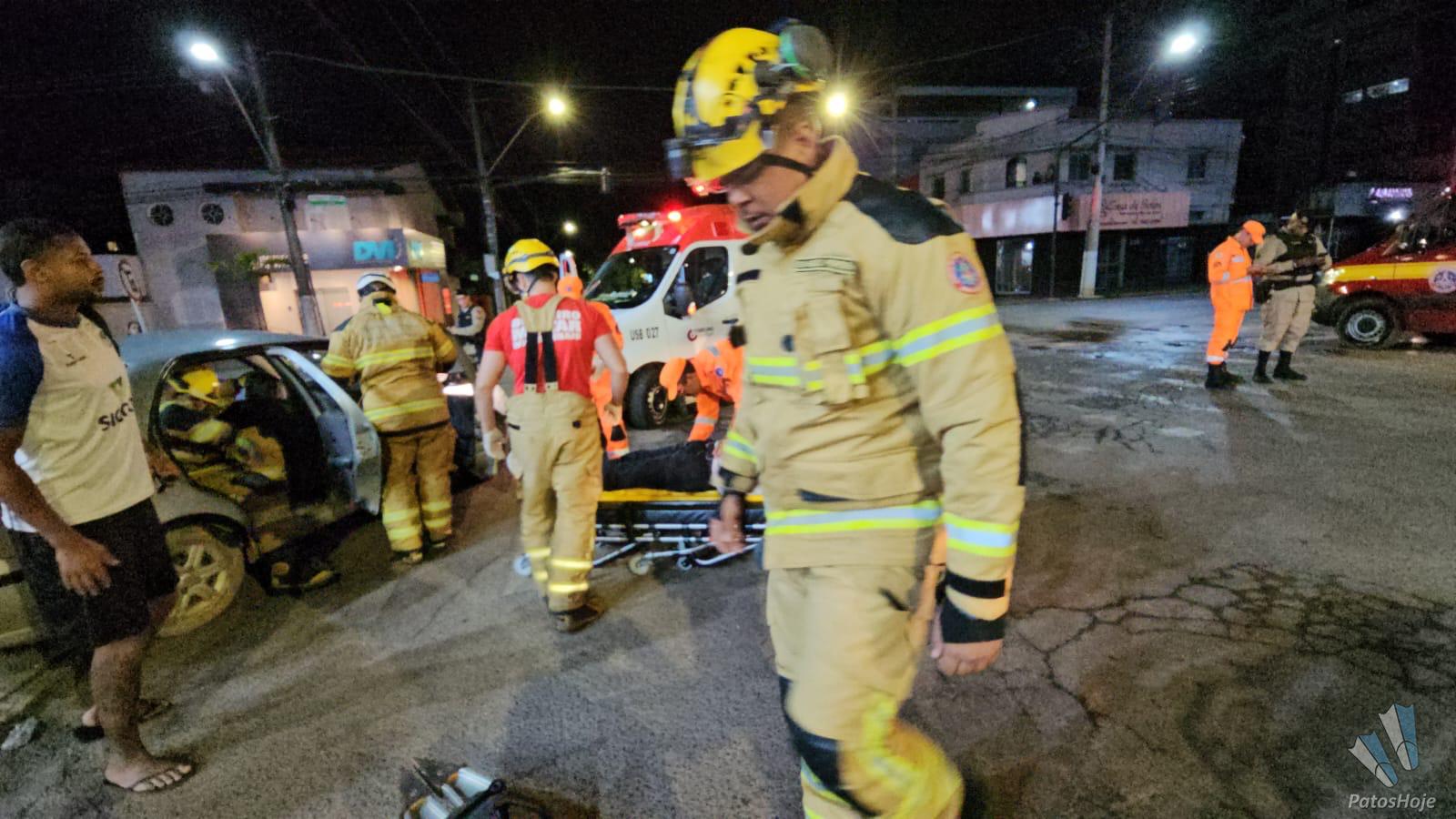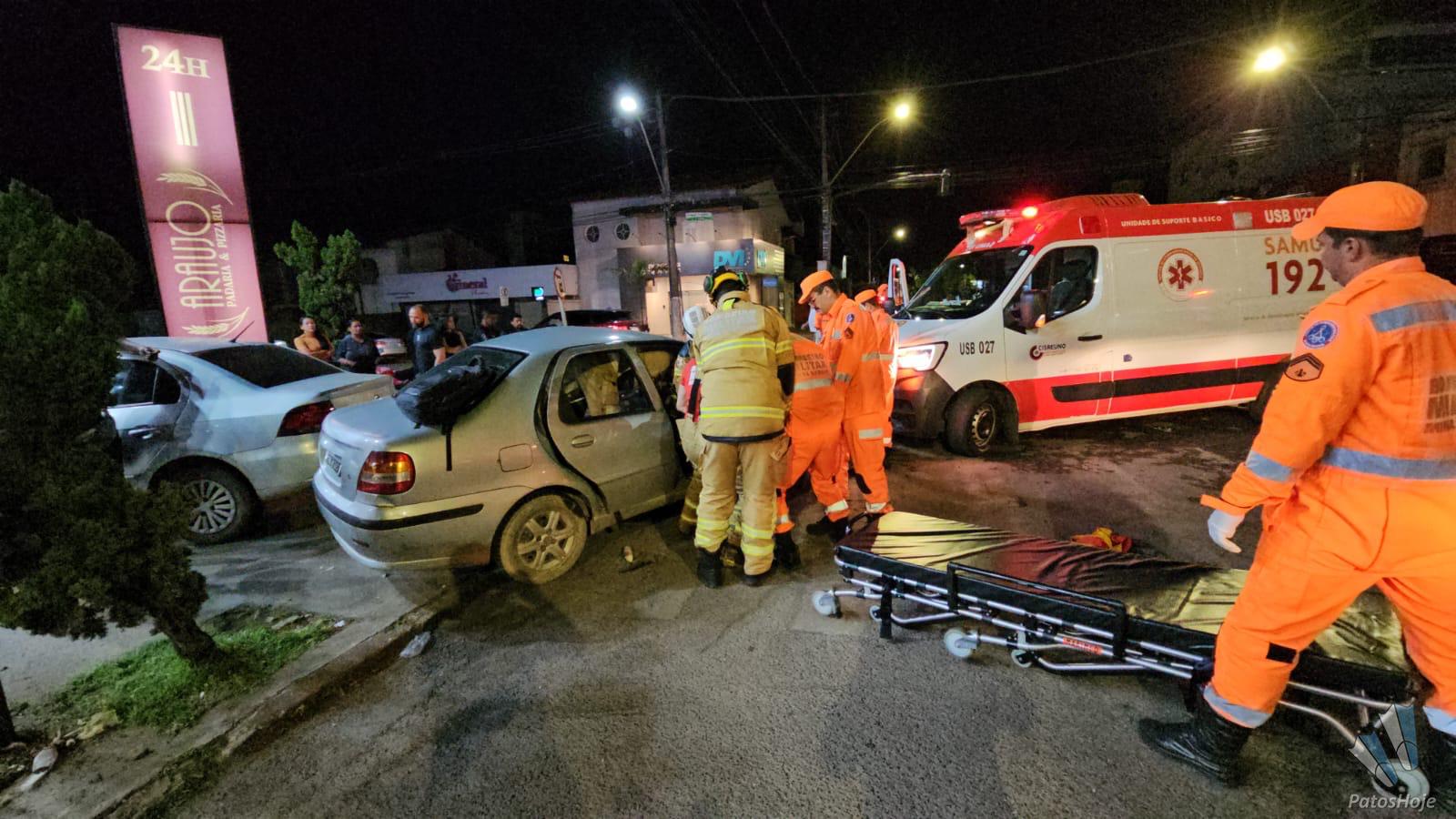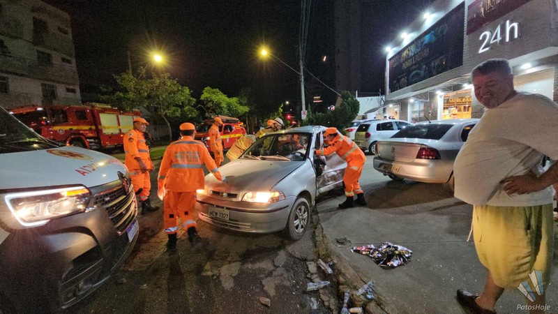 O motorista do carro, por sua vez, ficou retido no interior do veículo, que teve a lateral severamente danificada. Os bombeiros realizaram o desencarceramento para retirá-lo em segurança. O condutor estava consciente e apresentava apenas um sangramento na face.