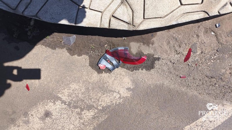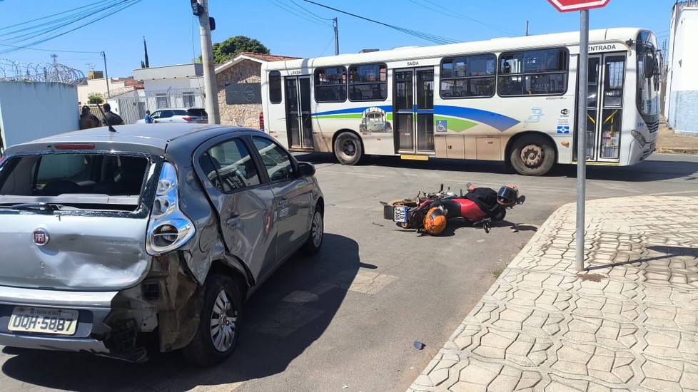 Com o impacto, o carro rodou e acabou acertando o mototaxista que estava do outro lado da Rua Minas Gerais, aguardando o fluxo de veículos. A vítima sofreu um ferimento no braço e teve que ser socorrido pelo SAMU até o hospital. Manchas de sangue ficaram impregnadas na parte traseira do carro, indicando onde o veículo atingiu a vítima. A Honda/Fan ficou caída no local, com poucos danos.