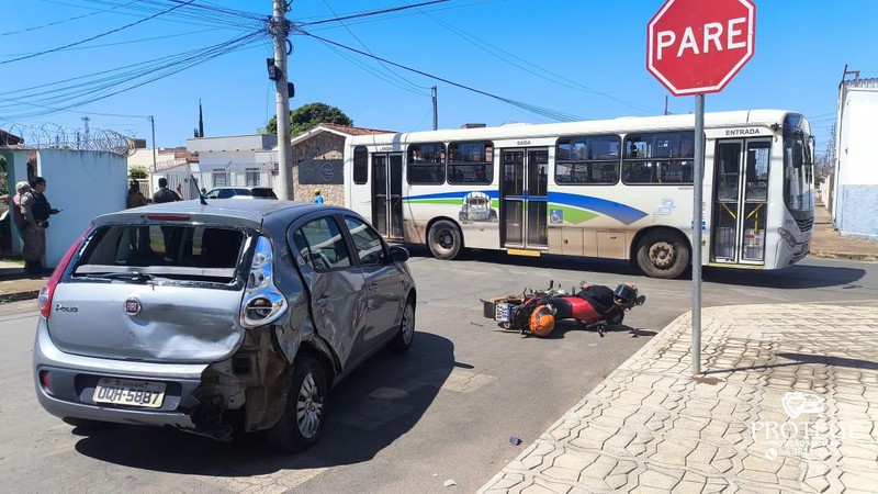 Os acidentes de trânsito em Patos de Minas vêm acontecendo de diversas formas e algumas chamam bastante a atenção. Na manhã deste sábado (12), um mototaxista que estava parado no cruzamento acabou sendo atingido por um carro que havia acabado de avançar a parada obrigatória e causado um acidente com um ônibus ocupado por 20 passageiros. Do transporte coletivo, ninguém se feriu, mas o mototaxista teve que ser levado para o hospital.