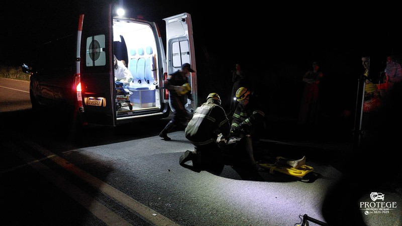 Os dois passageiros do veículo Gol encontravam-se conscientes, orientados, apresentando apenas ferimentos leves. O Corpo de Bombeiros com uso do aparelho desencarcerador retirou o condutor do veículo das ferragens, fez a segurança do local.
